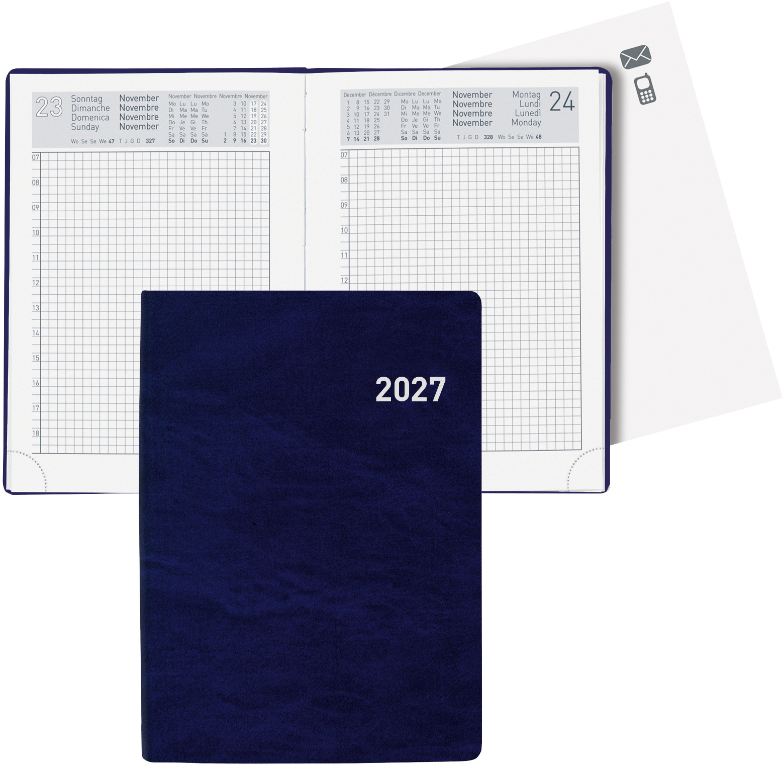 BIELLA Agenda Le Jour 2027 801310050027U 1J/1P bleu ML 13.5x31.5cm