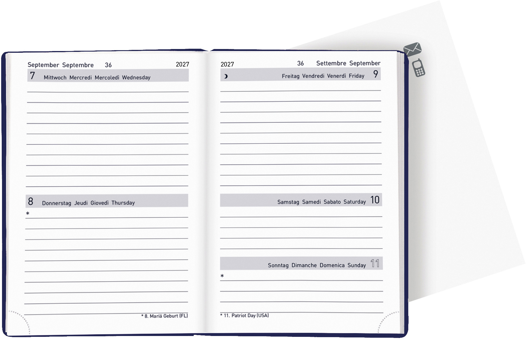 BIELLA Agenda Dispo Term Savana 2027 808591070027U 1S/2P bleu f. ML 14.5x20.5cm