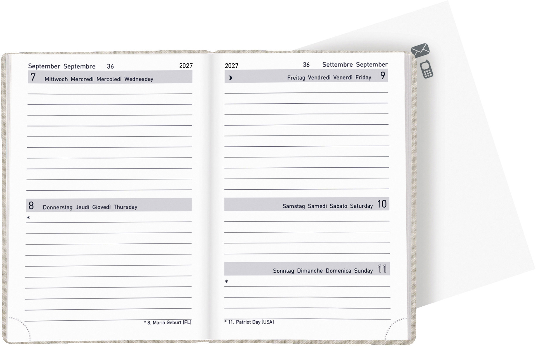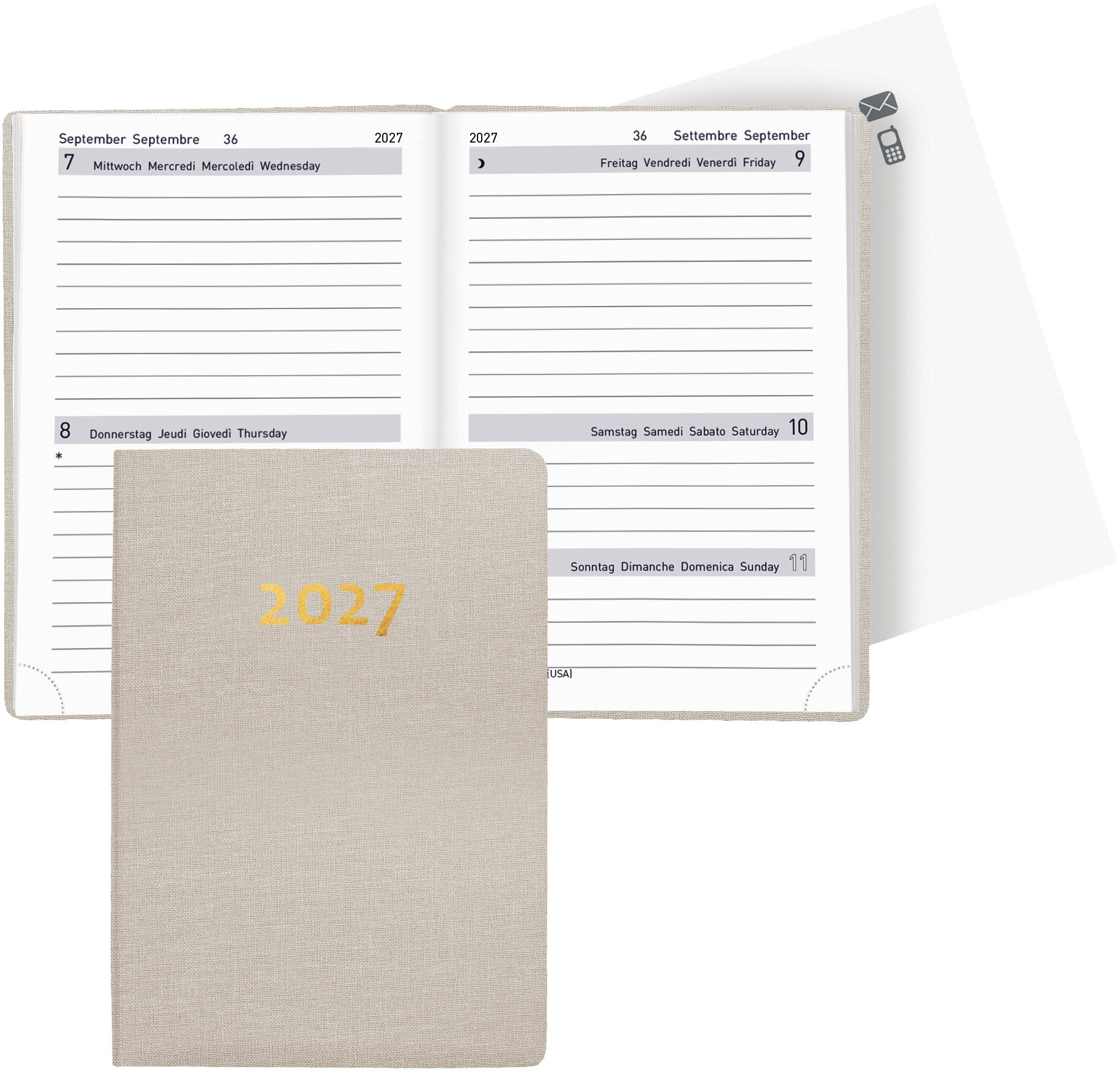 BIELLA Agenda Memento Natural 2027 858692310027U 1S/2P vertclair 10.1x14.2cm
