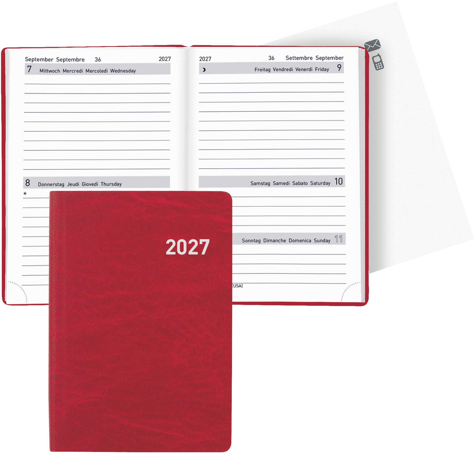 BIELLA Agenda Glasgow 2027 855312470027U 1M/2P rouge vin ML 10x13.9cm