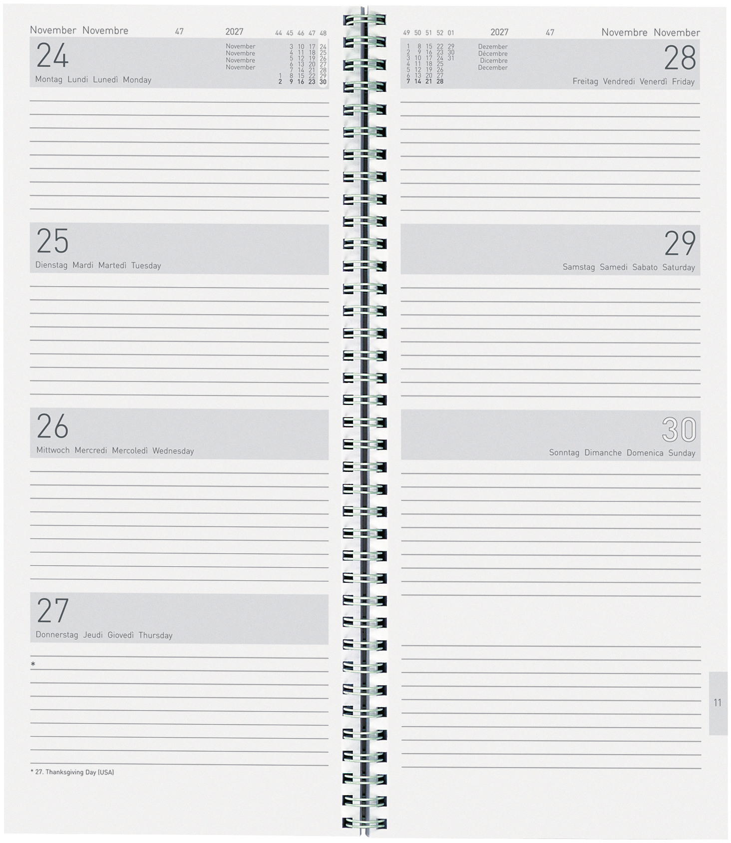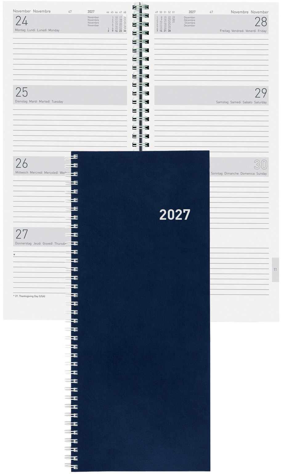 BIELLA Calend.mural Longus WireO 2027 889019000027U 1M/1P Wire-O ML 12x54.4cm