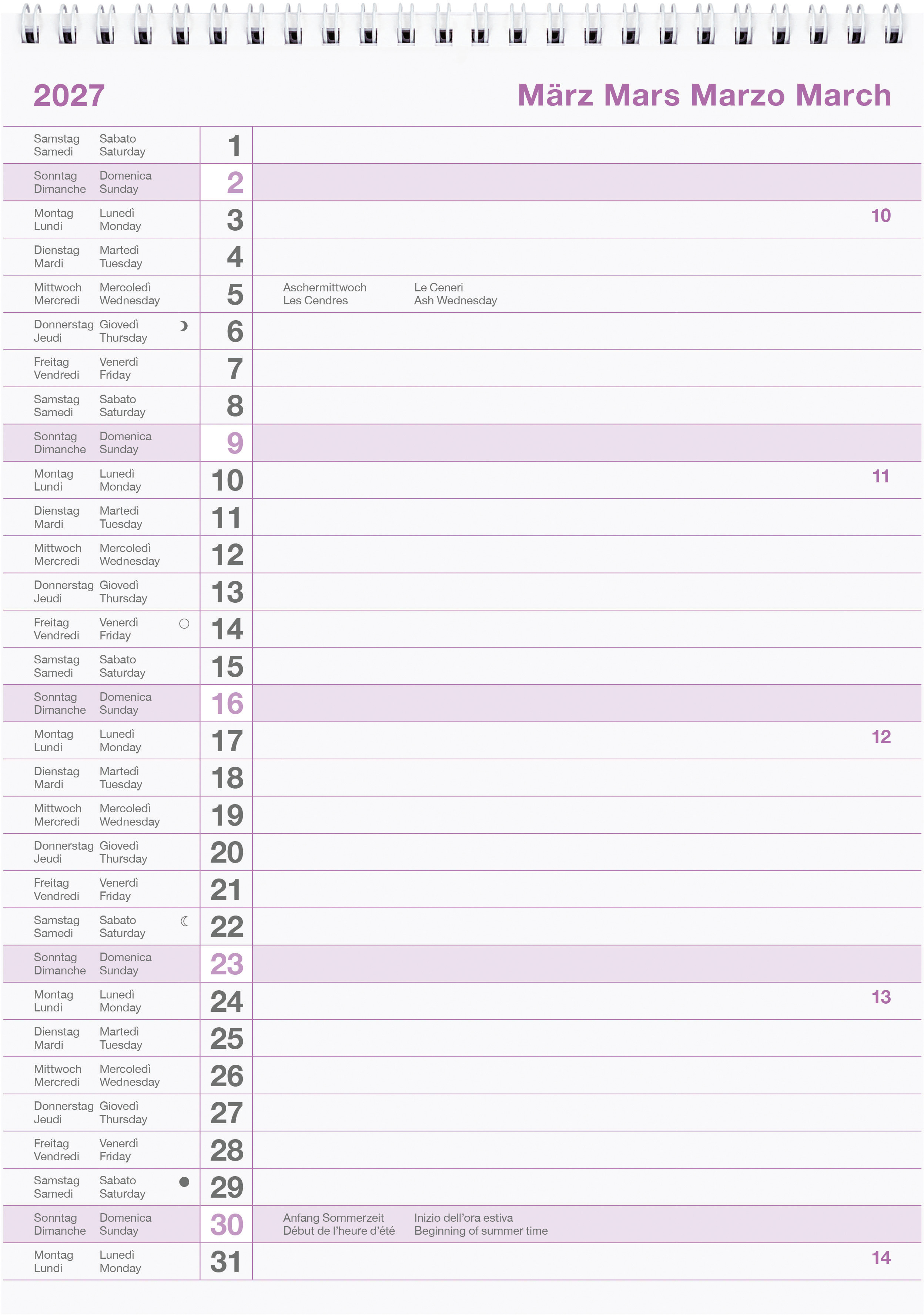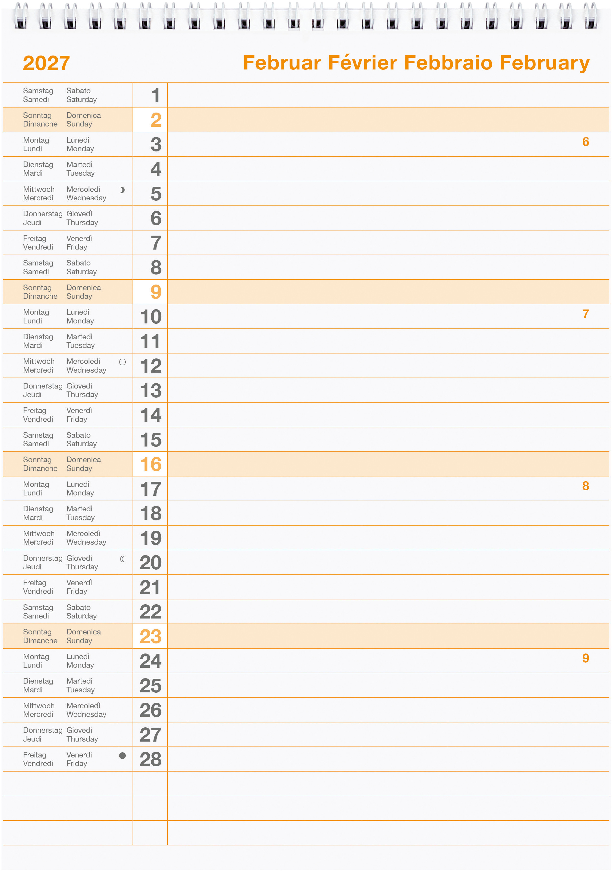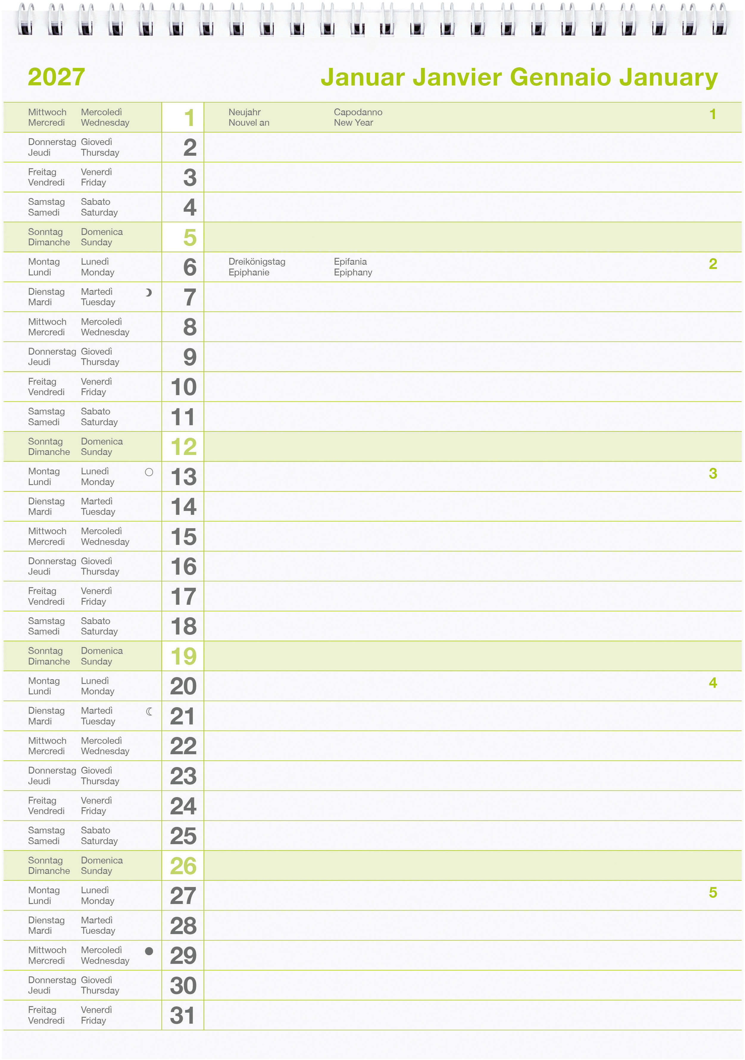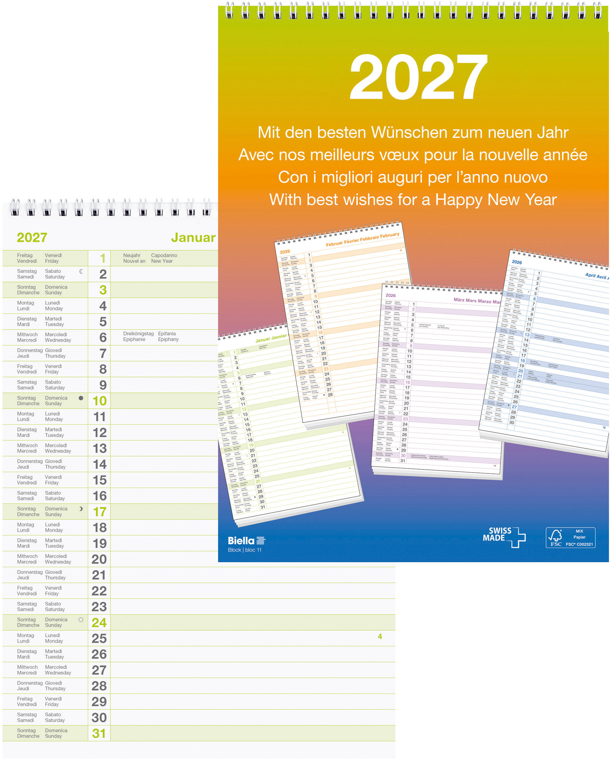 BIELLA Calendrier mural annuel 2027 876012000027U 1A/1P blanc ML 69.5x46cm