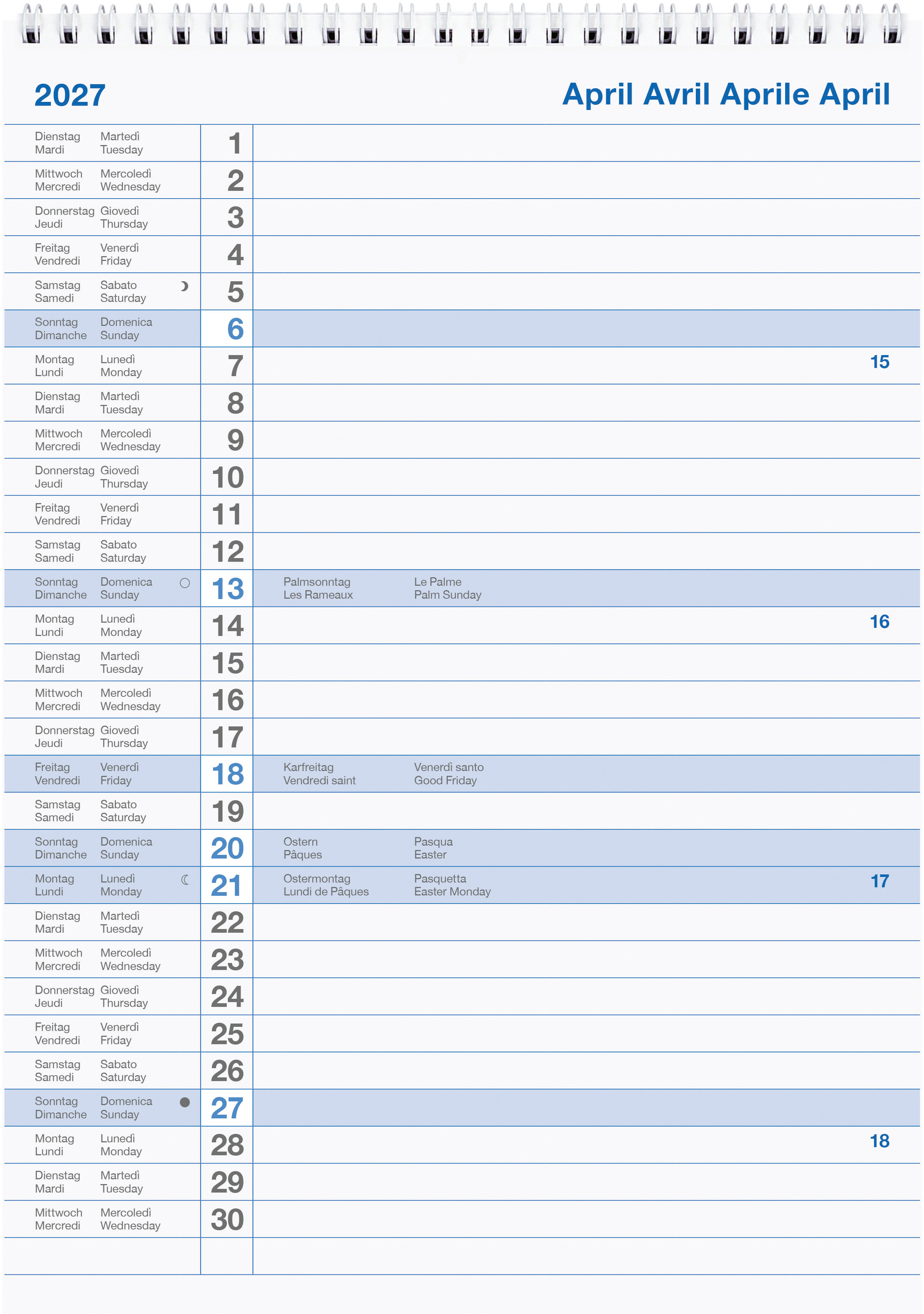 BIELLA Agenda Seplana 2027 888371050027U 1S/2P bleu ML 29.8x11.7cm
