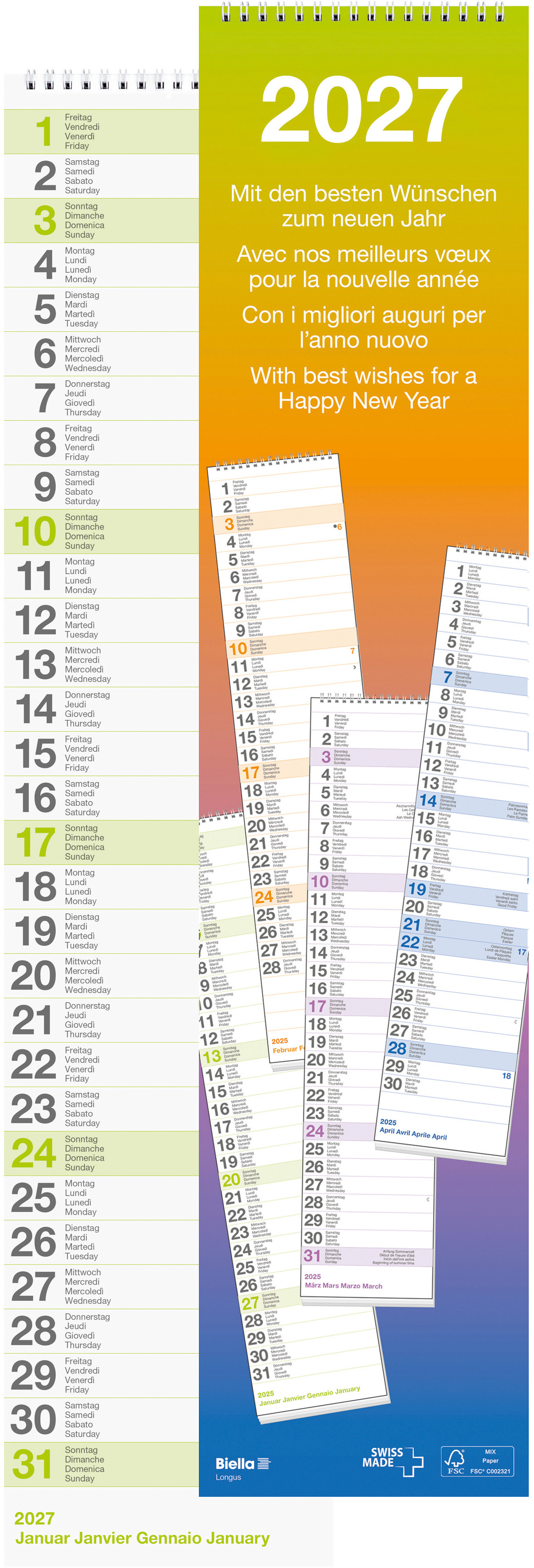 Le calendrier mural Biella avec calendrier 1 mois par page offre une vue d'ensemble du mois, mais aussi suffisamment de place pour prendre des notes, ce qui le rend idéal pour les ménages de plusieurs personnes.