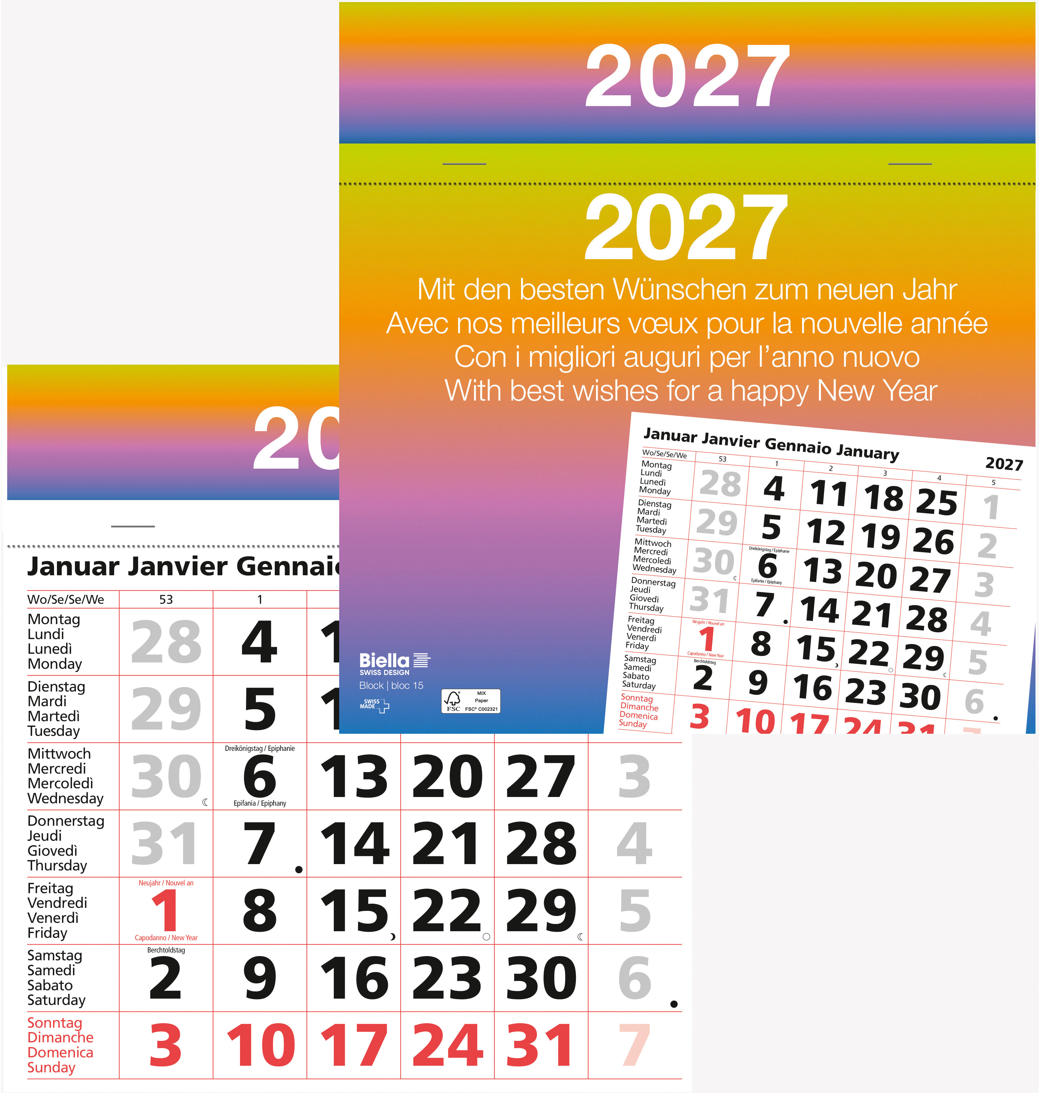 Le bloc à déchirer Biella avec 1 jour par page, à poser ou à suspendre, vous offre discrètement un aperçu quotidien.