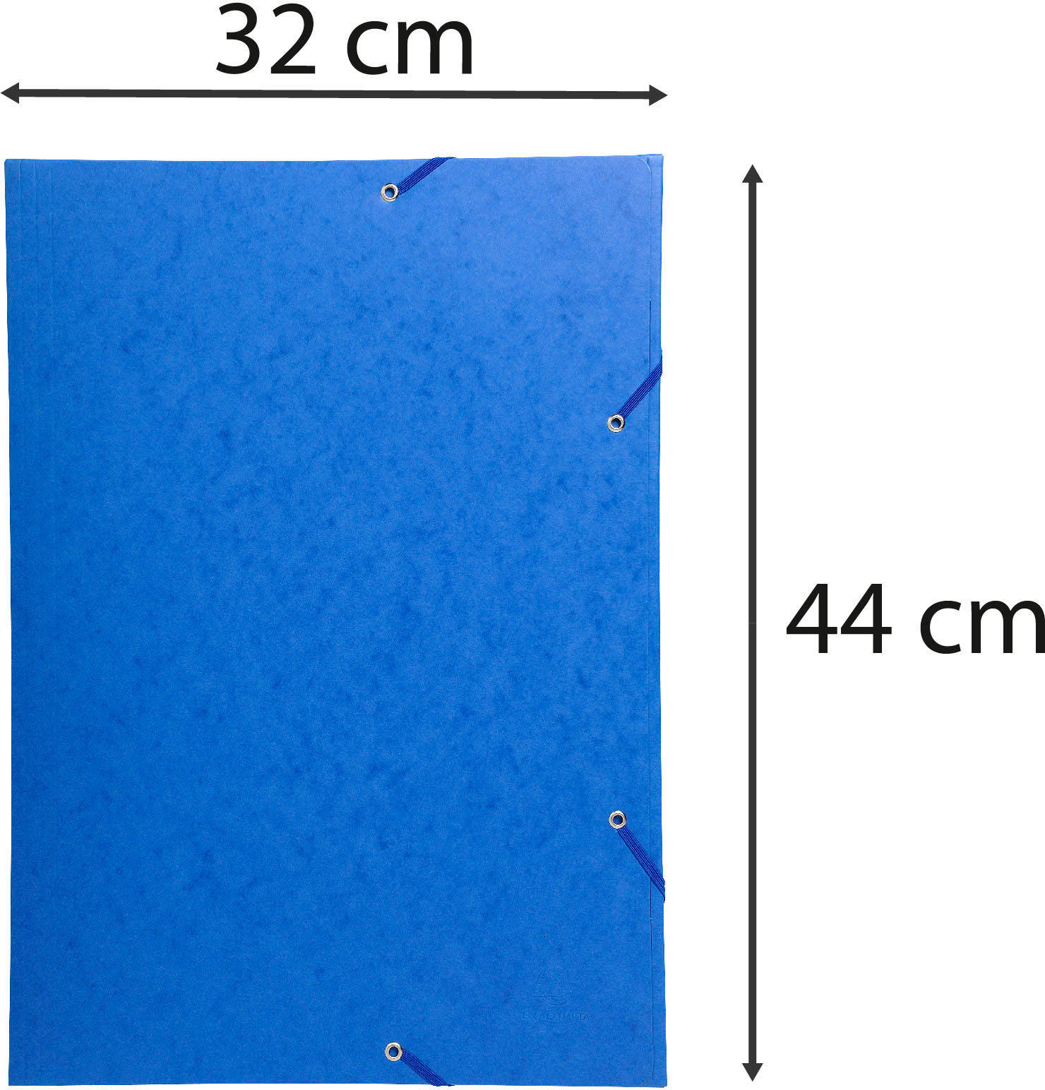 Dossier de classement avec élastique et 3 rabats en carton Colorspan 600g/qm, pour format A3. Carton solide et robuste pour protéger les documents de grand format. Chemise à dos plus épais pour le classement de documents volumineux. Le classeur A3 est parfait pour classer des croquis, des plans, des photos et est très facile à utiliser.