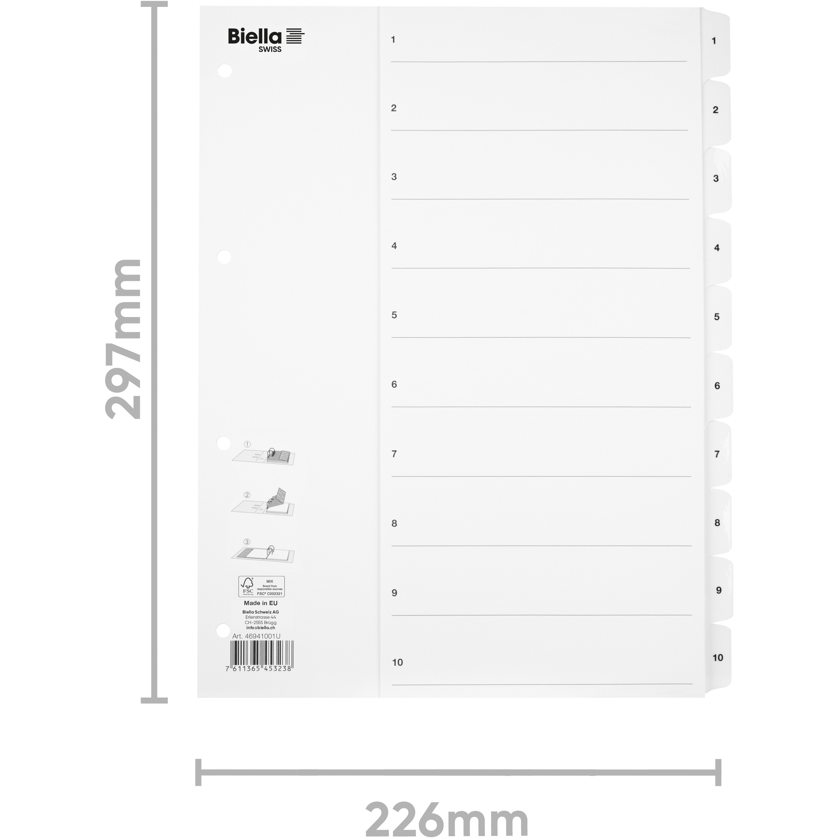BIELLA Répertoire carton Smartind. A4 46941001U blanc 1-10