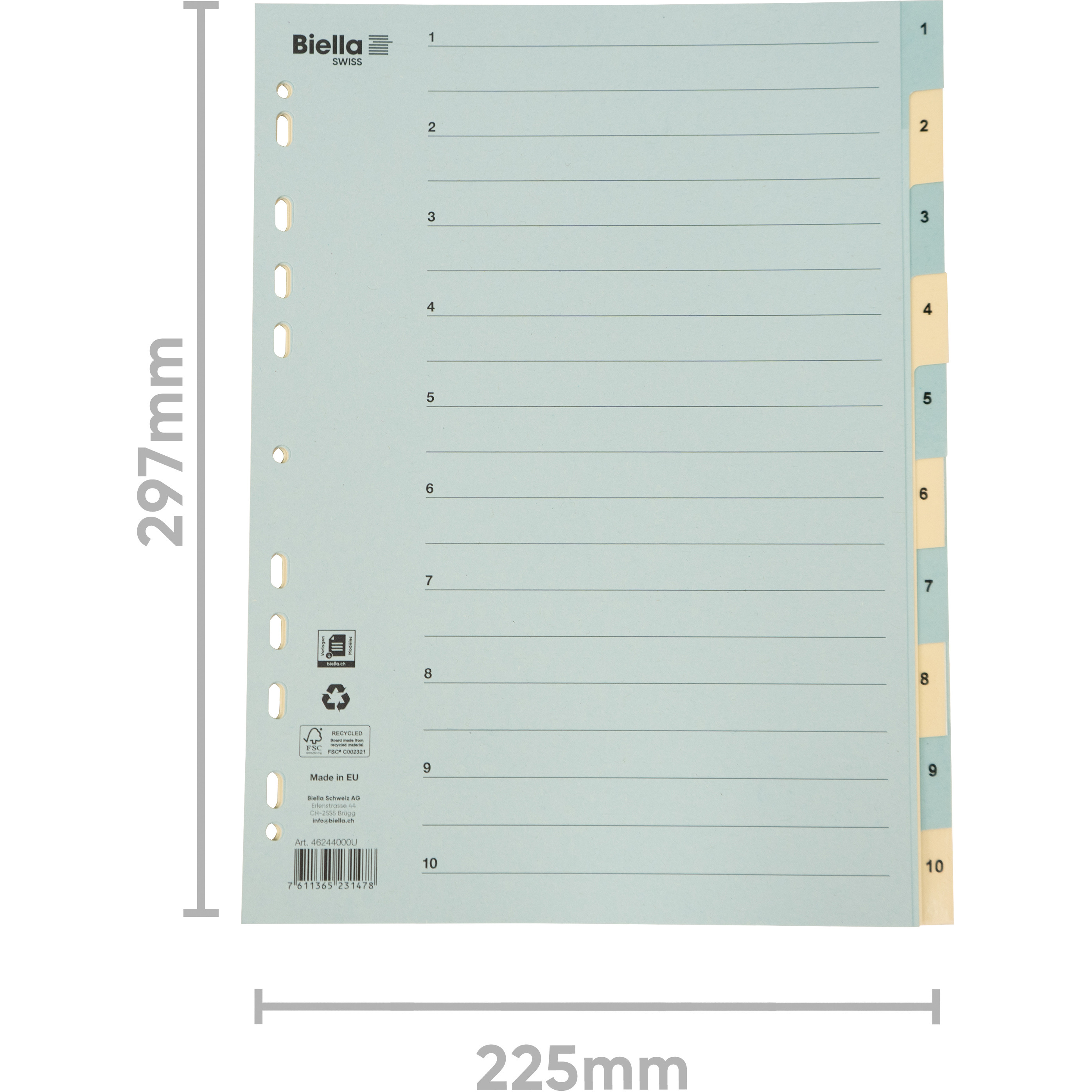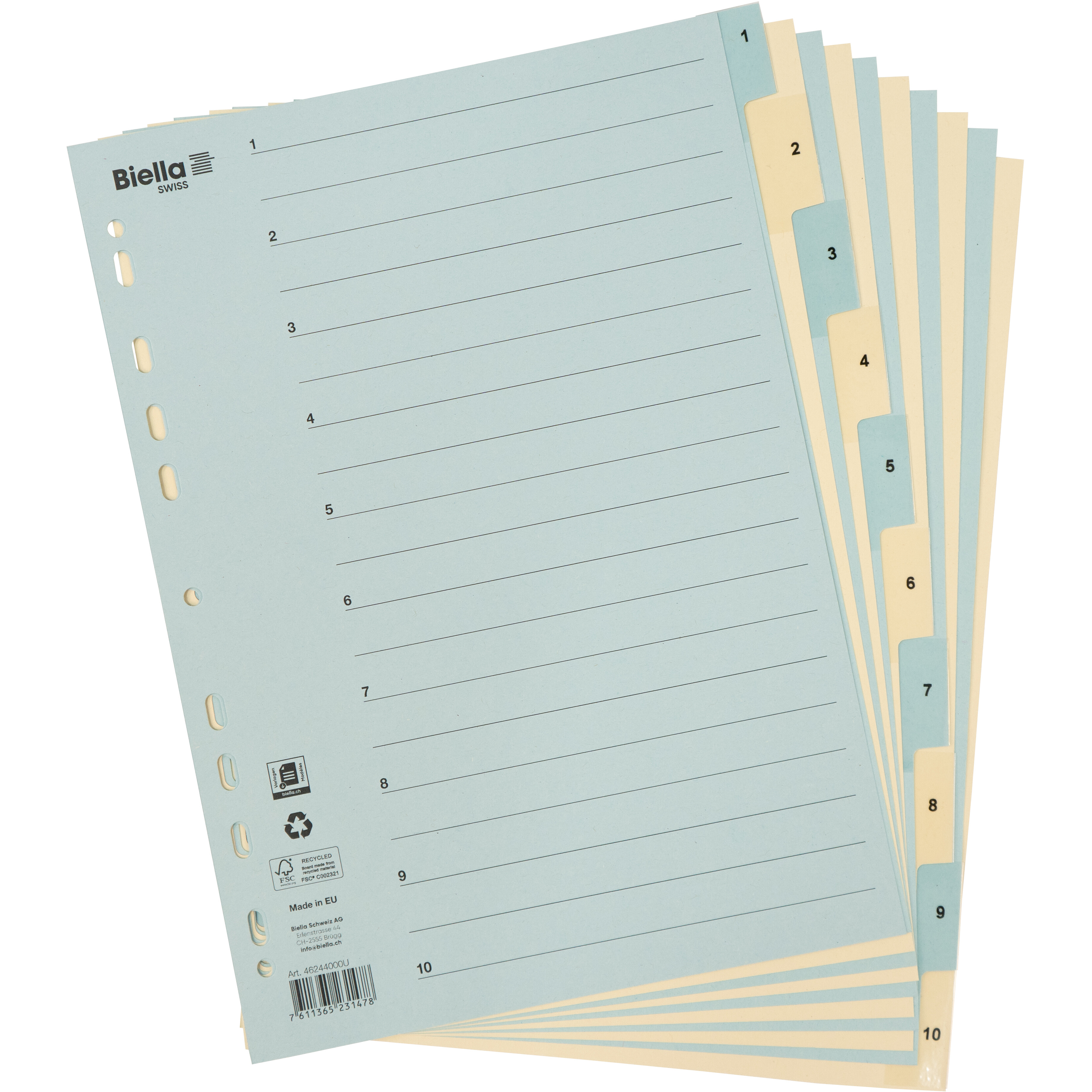 Classez vos documents rapidement et efficacement avec les intercalaires pratiques de Biella. Intercalaires en carton avec onglets renforcés : classez vos documents rapidement et efficacement grâce aux intercalaires pratiques de Biella. Les onglets ainsi que l'index personnalisable permettent de retrouver rapidement vos documents. Pour format A4. 1ère feuille avec index imprimé, 11 perforations, onglets imprimés et renforcés pour une protection particulière en cas d'utilisation intensive. En sachet individuel.