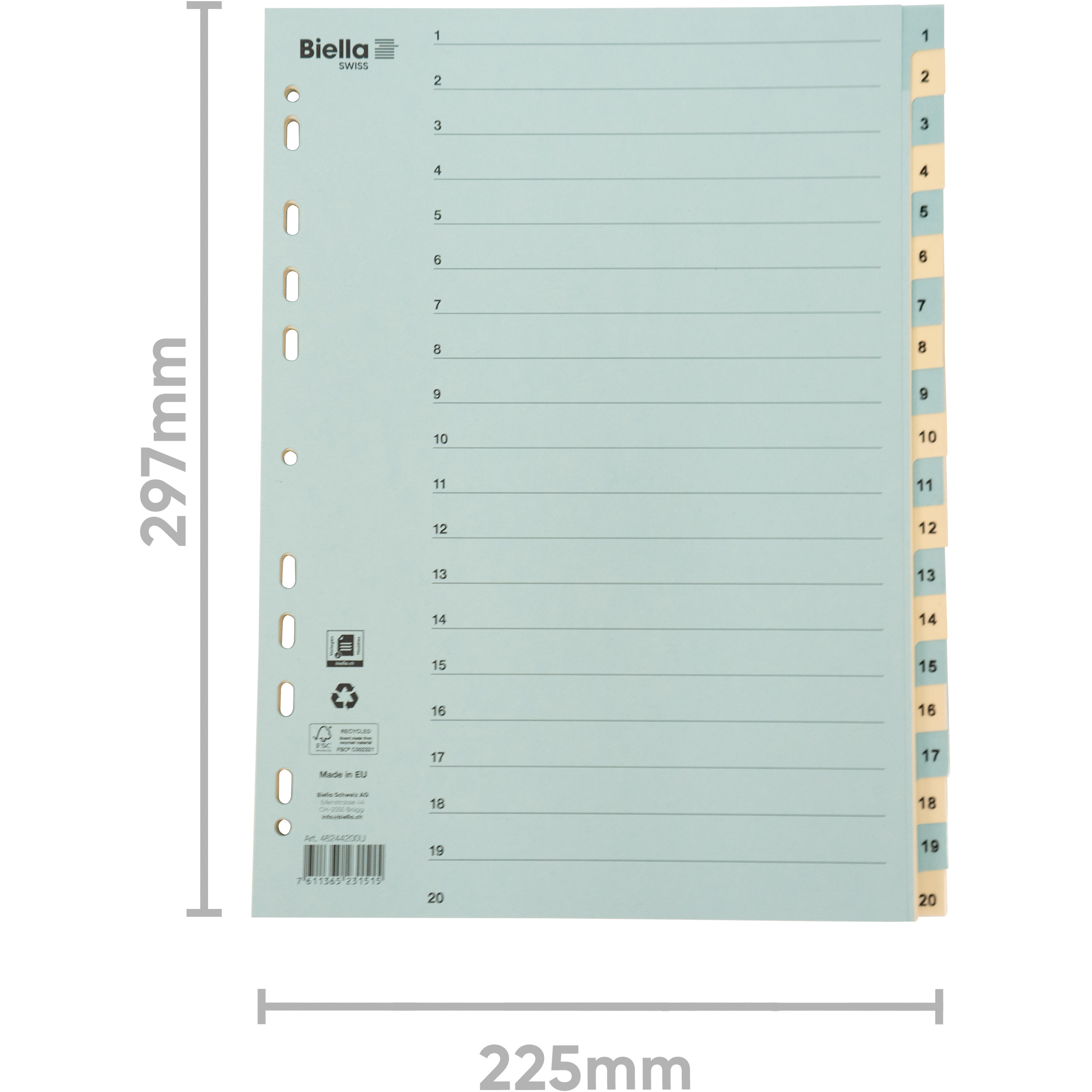 Répertoire en carton avec onglets renforcés : Classez vos documents rapidement et efficacement grâce aux répertoires pratiques de Biella. Les onglets ainsi que l'index personnalisable permettent de retrouver rapidement vos documents. Pour format A4. 1ère feuille avec index imprimé, 11 perforations, onglets imprimés et renforcés pour une protection particulière en cas d'utilisation intensive. En sachet individuel.