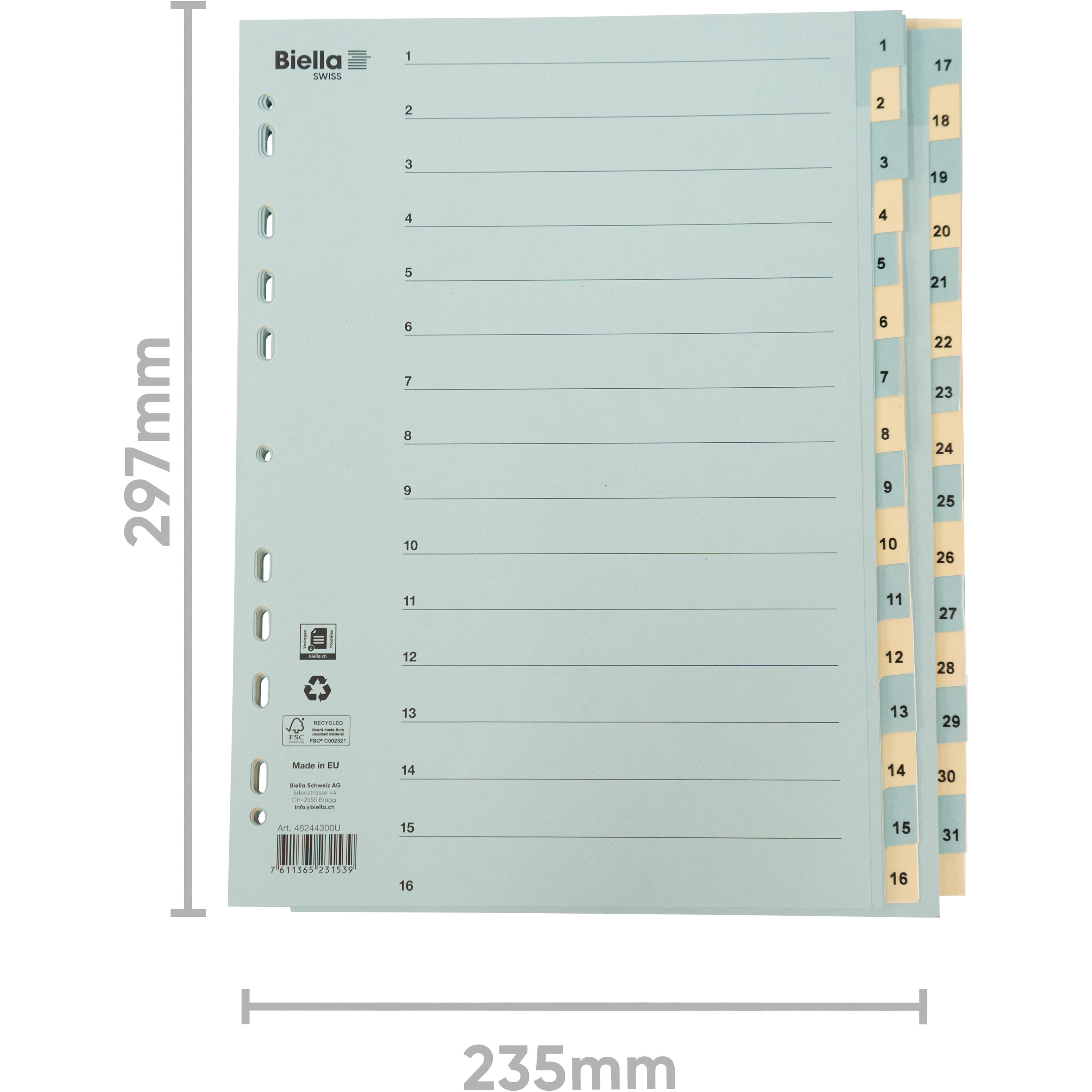 BIELLA Répertoires carton 210g A4 46244300U bleu/jaune 1-31