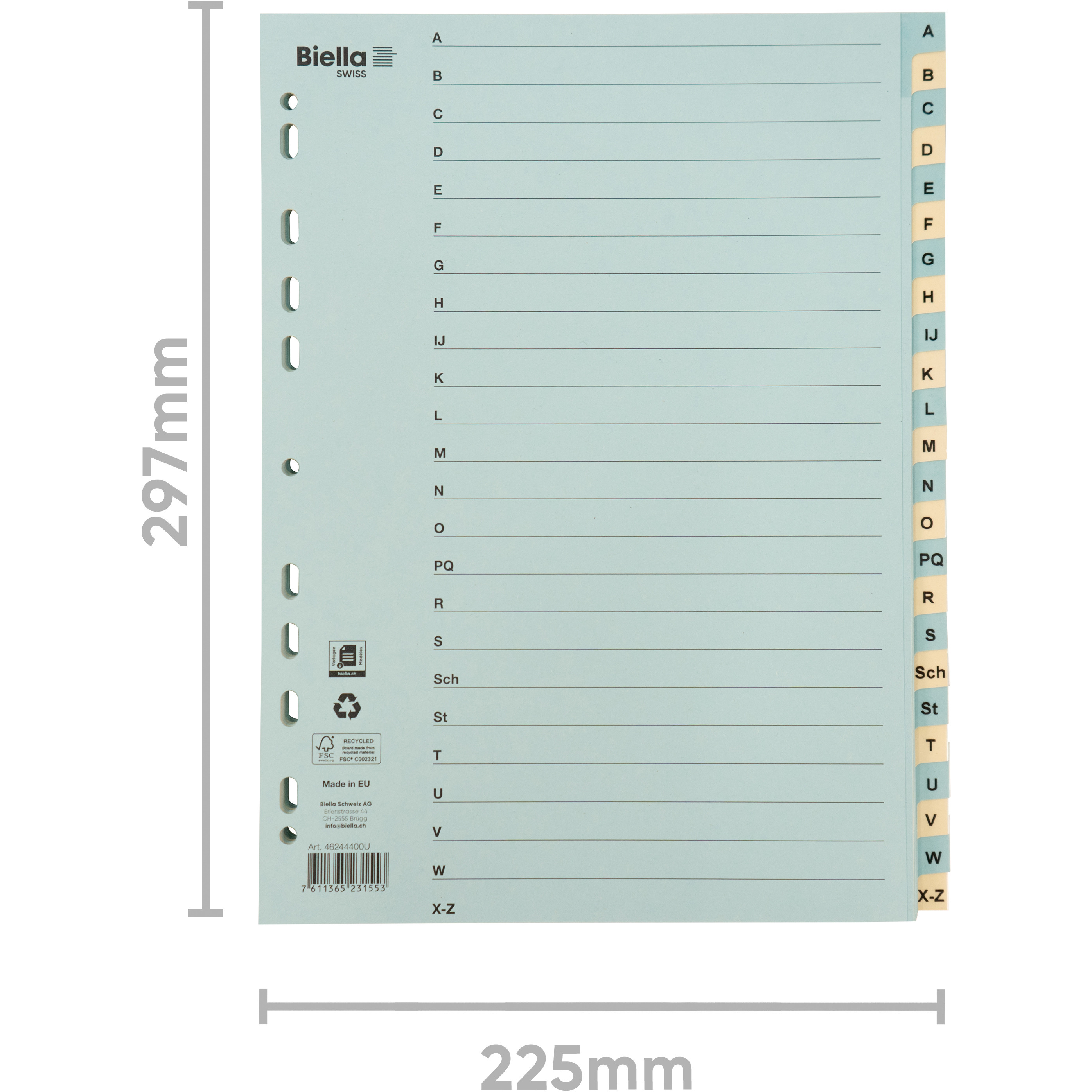 Organisez vos documents rapidement et efficacement grâce aux registres pratiques de Biella. Les onglets colorés et l'index qui peut être étiqueté individuellement vous permettent de trouver rapidement vos documents.