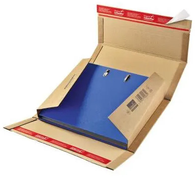 Sécurité pour les classeurs - l'emballage d'expédition pour classeurs avec double fermeture, adapté aux classeurs DIN A4 avec une hauteur de dos de 35 à 80 mm. La double fermeture autocollante COLOMPAC permet d'économiser du temps et des moyens de fermeture supplémentaires. Le fil d'arrachage intégré assure une ouverture rapide et facile.