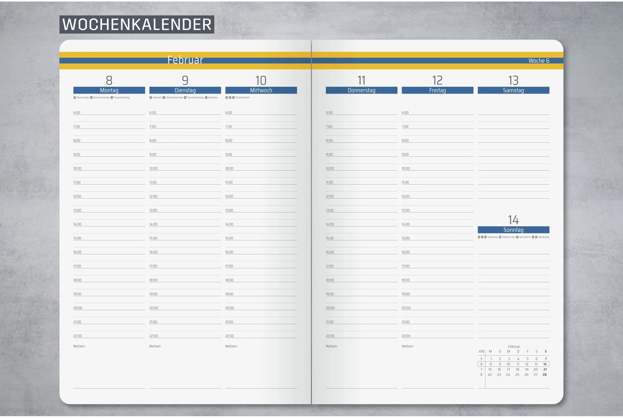Tous les agendas Linescape sont fabriqués avec une reliure à fil de haute qualité qui assure une stabilité particulière et maintient toutes les pages en toute sécurité dans le livre. La reliure en PU souple est agréable à prendre en main et particulièrement durable. À l'intérieur, du papier blanc (80 g/m²) certifié FSC garantit une écriture propre. Un élastique, un passant pour stylo bicolore et deux bandes à dessin complètent cet équipement pratique.