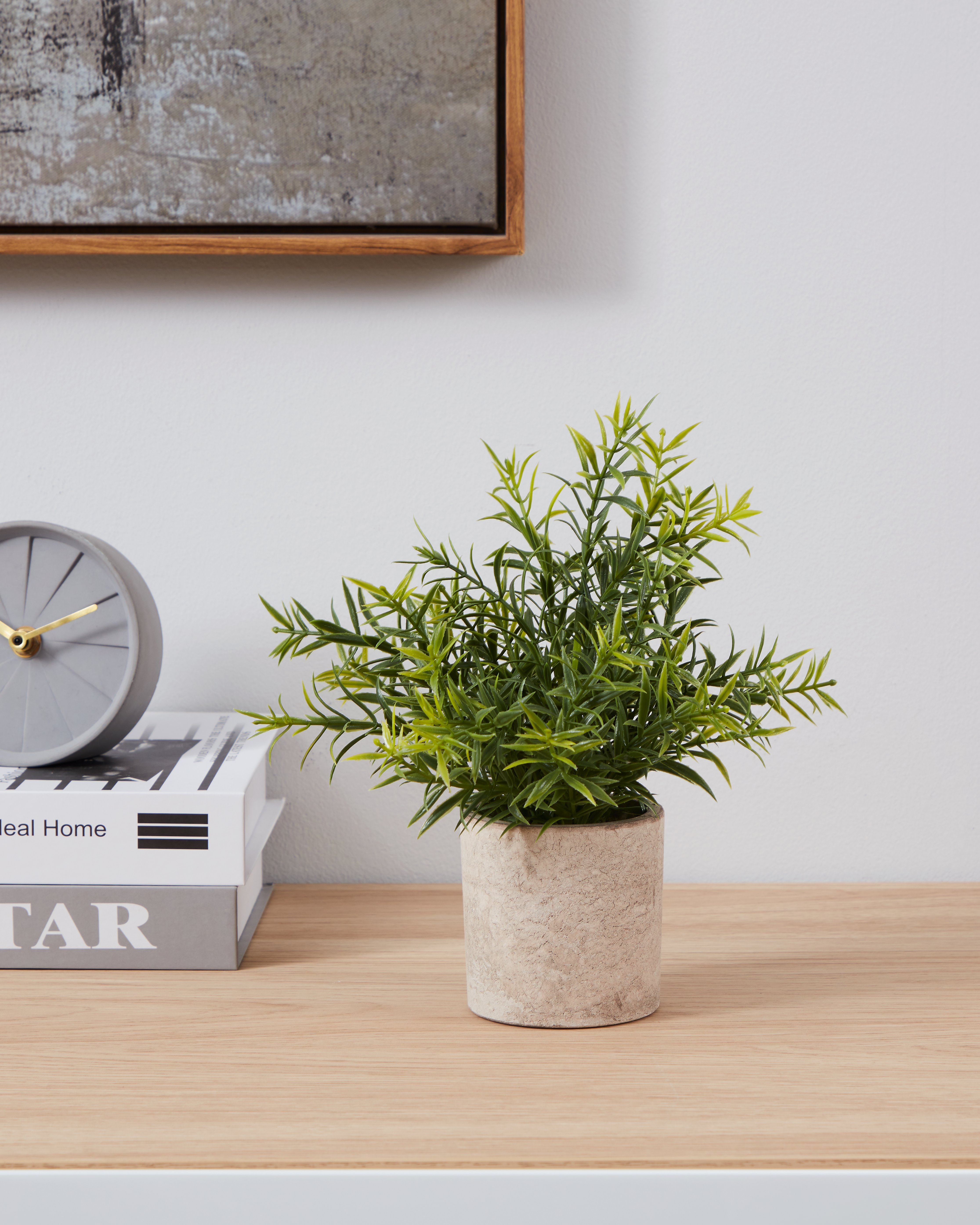 Notre plante artificielle CHITOSE rend ta maison plus verte et plus fraîche. La plante verte au look authentique est ornée d'un pot en paper pulp. La pâte à papier est une sorte de pâte de bois obtenue par défibrage mécanique du bois. Les détails naturels, la durabilité et les matériaux durables sont ainsi réunis. Avec une taille de 22 cm, la plante peut être placée n'importe où. En vacances, tu n'auras donc plus à te soucier de ta plante préférée.