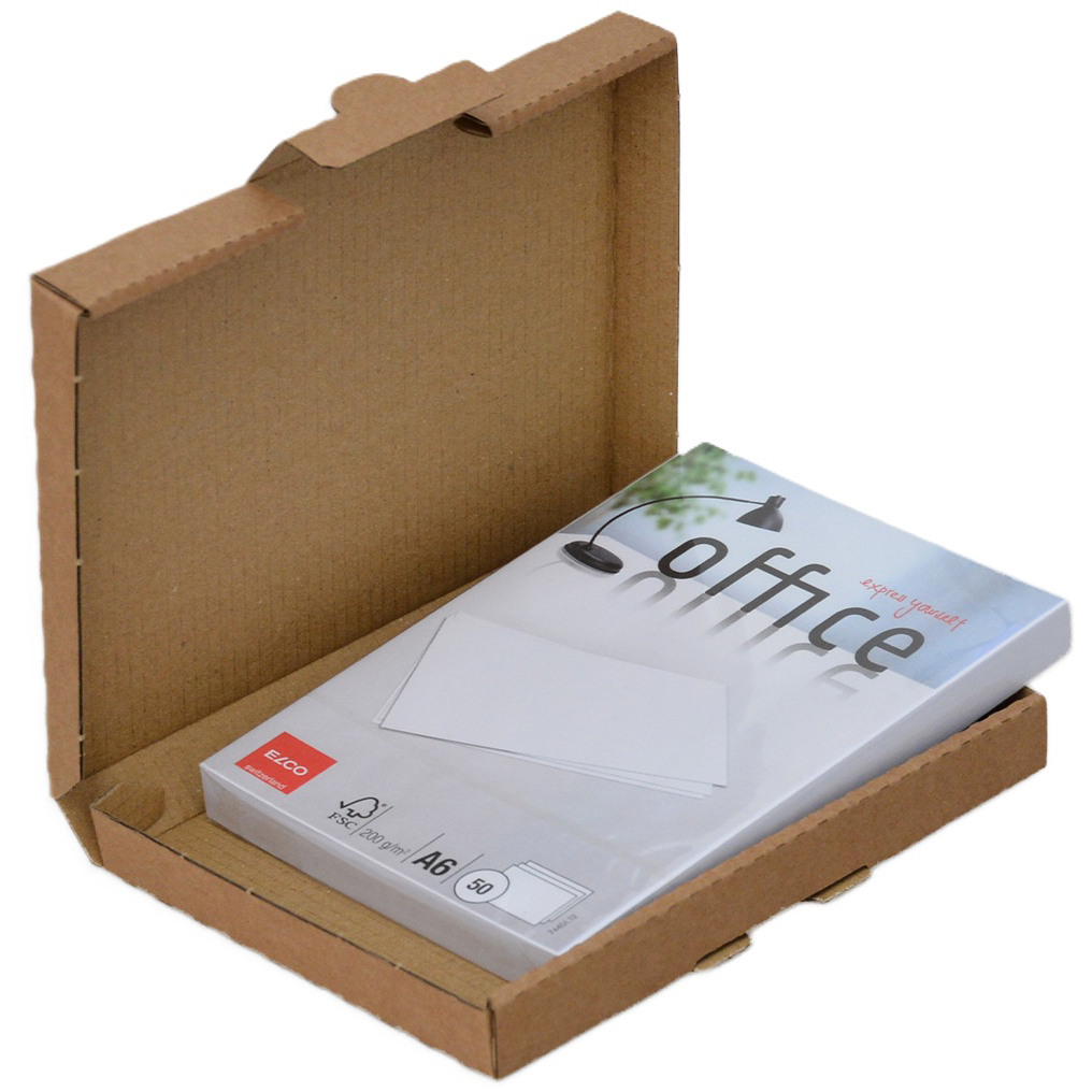 La boîte à rabat d'une seule pièce est facile à fermer et à ouvrir. Grâce à sa faible épaisseur, elle peut être envoyée au tarif de la poste aux lettres et permet ainsi d'économiser des frais de port.