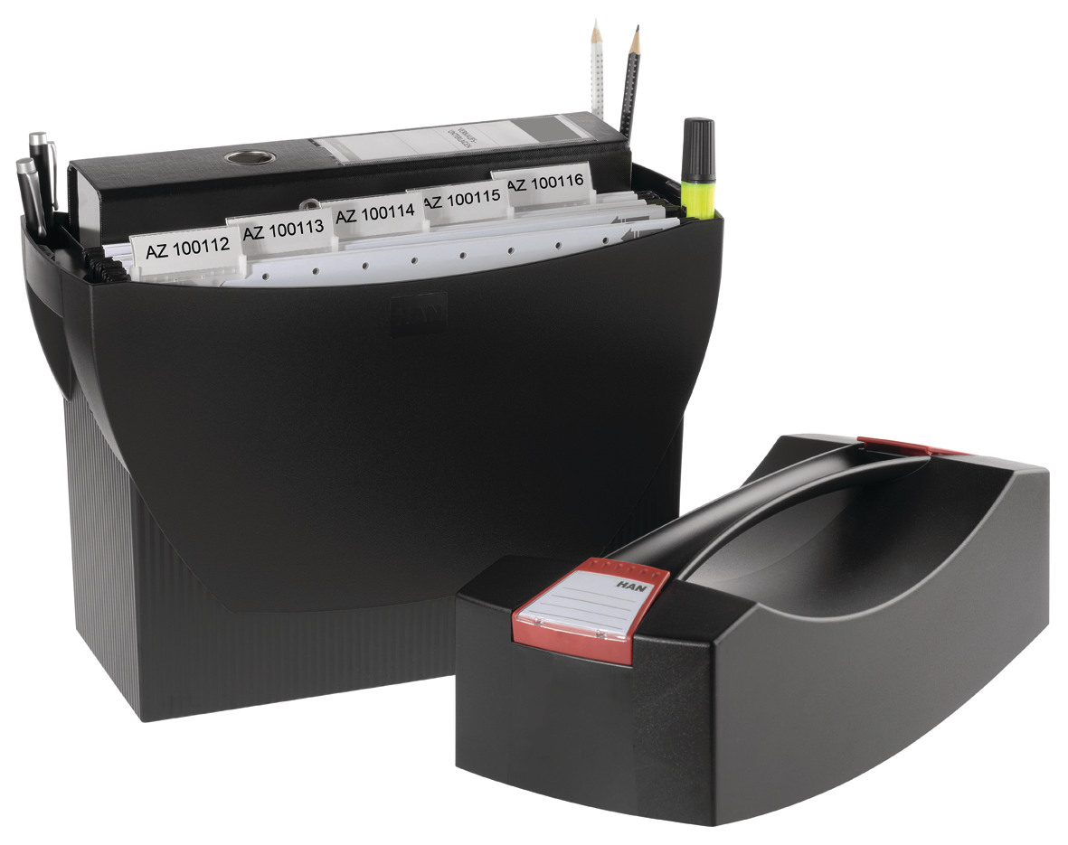 Sur la route avec un bureau mobile, grâce à la boîte à dossiers suspendus Swing. Un design innovant, une fabrication robuste et léger comme une plume. Facile à ouvrir et à fermer grâce à 2 clips de verrouillage brevetés. Peut contenir jusqu'à 20 dossiers suspendus de 24 cm ou 3 dossiers (4 cm). Un autre avantage est le porte-stylo intégré et l'étiquette sur le couvercle.