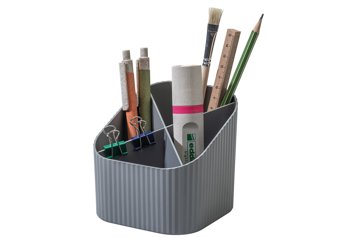 Avec le carquois KARMA, l'ordre règne sur le bureau. La gamme HAN KARMA est produite avec des matériaux post-consommation (produits en plastique déjà utilisés). Distingué par le certificat environnemental : L'ANGE BLEU. Les 4 compartiments de différentes hauteurs offrent beaucoup de place pour les crayons, les pinceaux et de nombreux autres ustensiles. Pour le bureau ou la maison. Le carquois de bureau KARMA est résistant et durable. Il s'adapte à tous les produits de la série KARMA. Fabriqué en Allemagne.