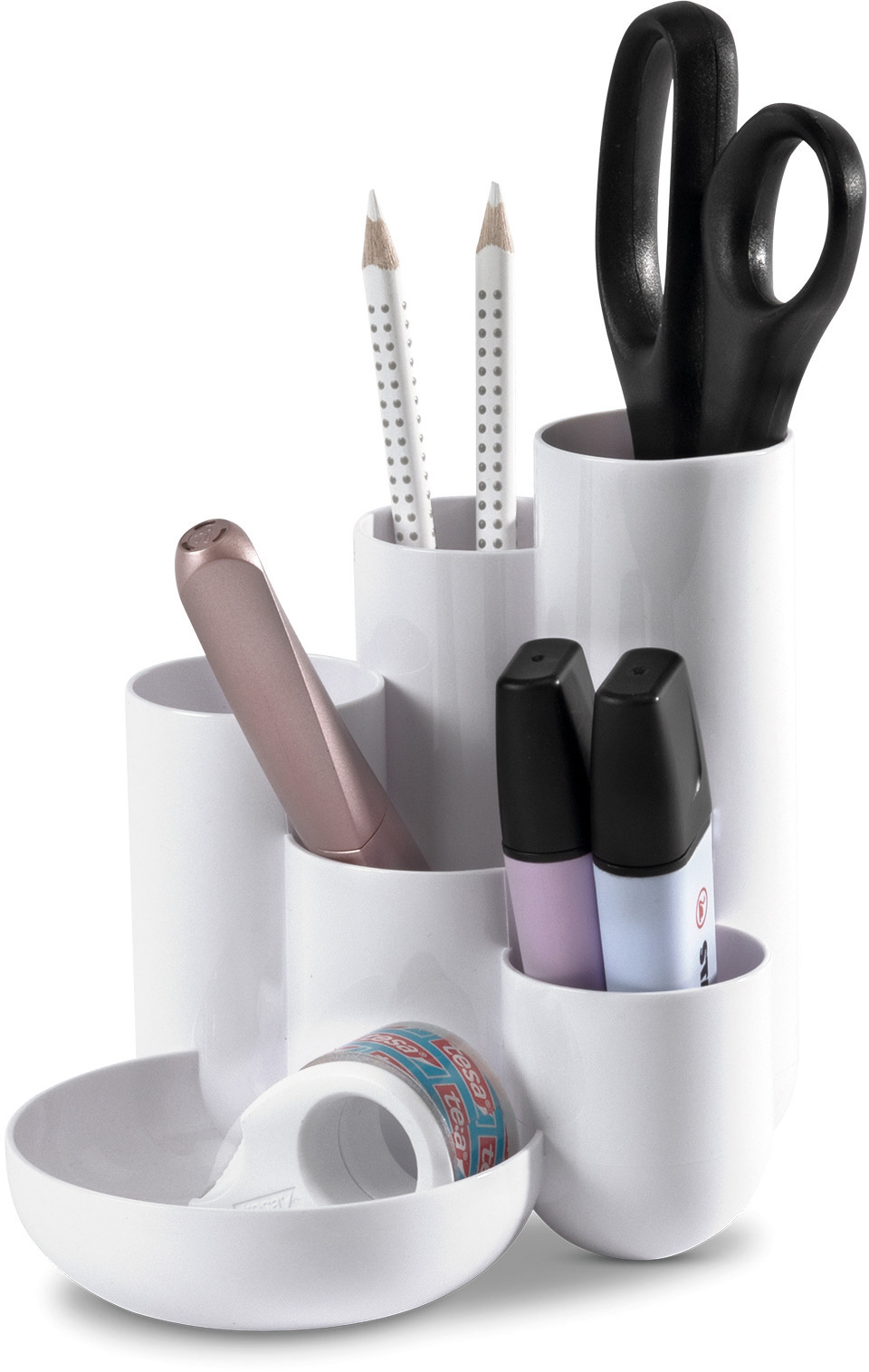 Le carquois de bureau CAMPUS avec 5 tubes et un bac pour le rangement de petits objets dans de nouvelles couleurs pastel est l'accroche-regard coloré pour chaque bureau.