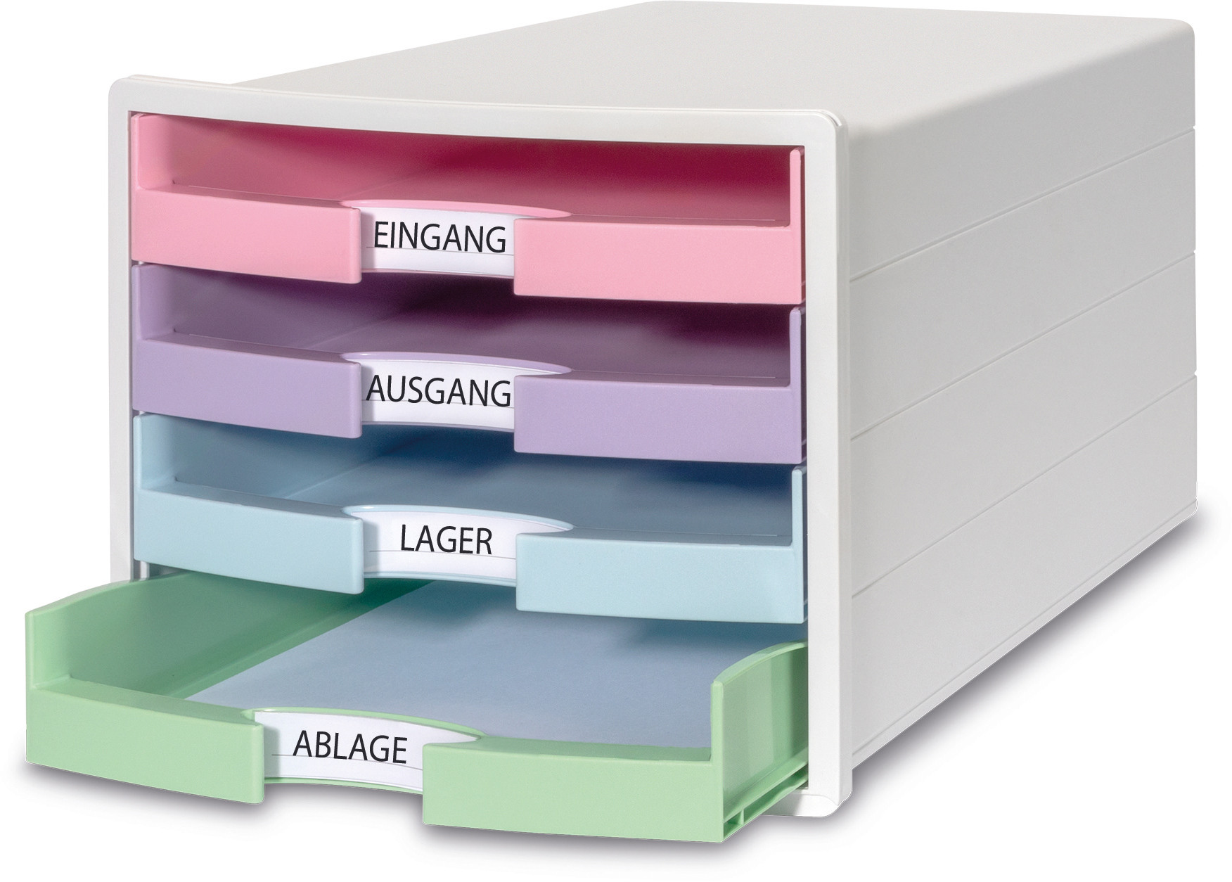 Nouveau design moderne du boîtier avec des tiroirs spacieux pour les formats de papier A4/C4. Design innovant et attrayant de qualité supérieure. Grandes étiquettes interchangeables incluses avec couvercle transparent de haute qualité pour retrouver facilement les documents. Fabriqué en Allemagne