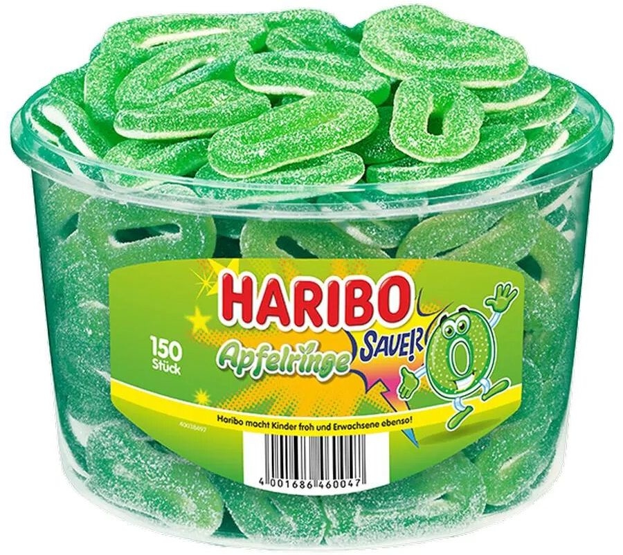 HARIBO Gommes aux fruits Anneaux de pomme acidulés, 150 pièces
