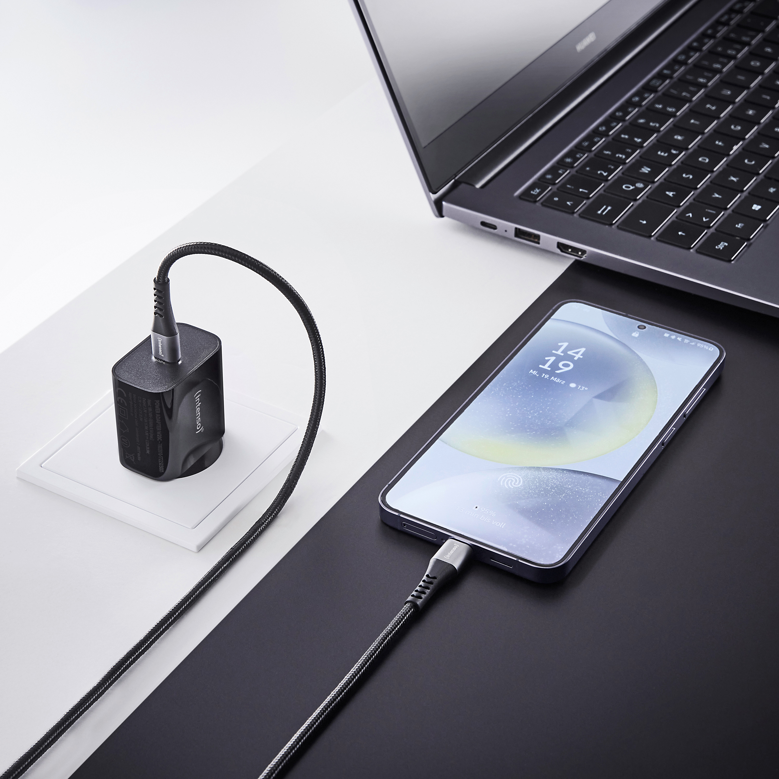 INTENSO Power Charger 30W GaN 1x USB-C 7803042 + Cable USB-C to USB C white