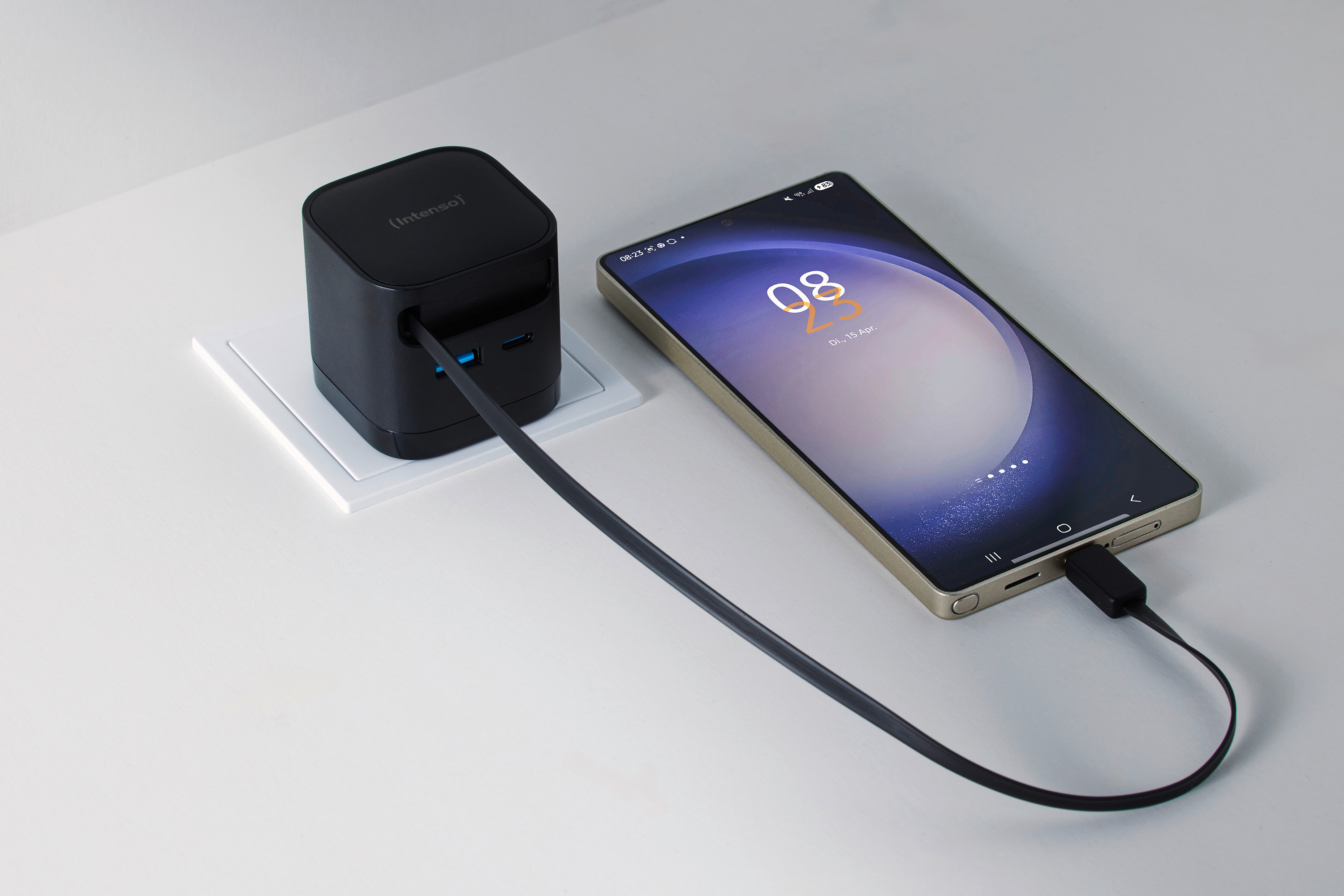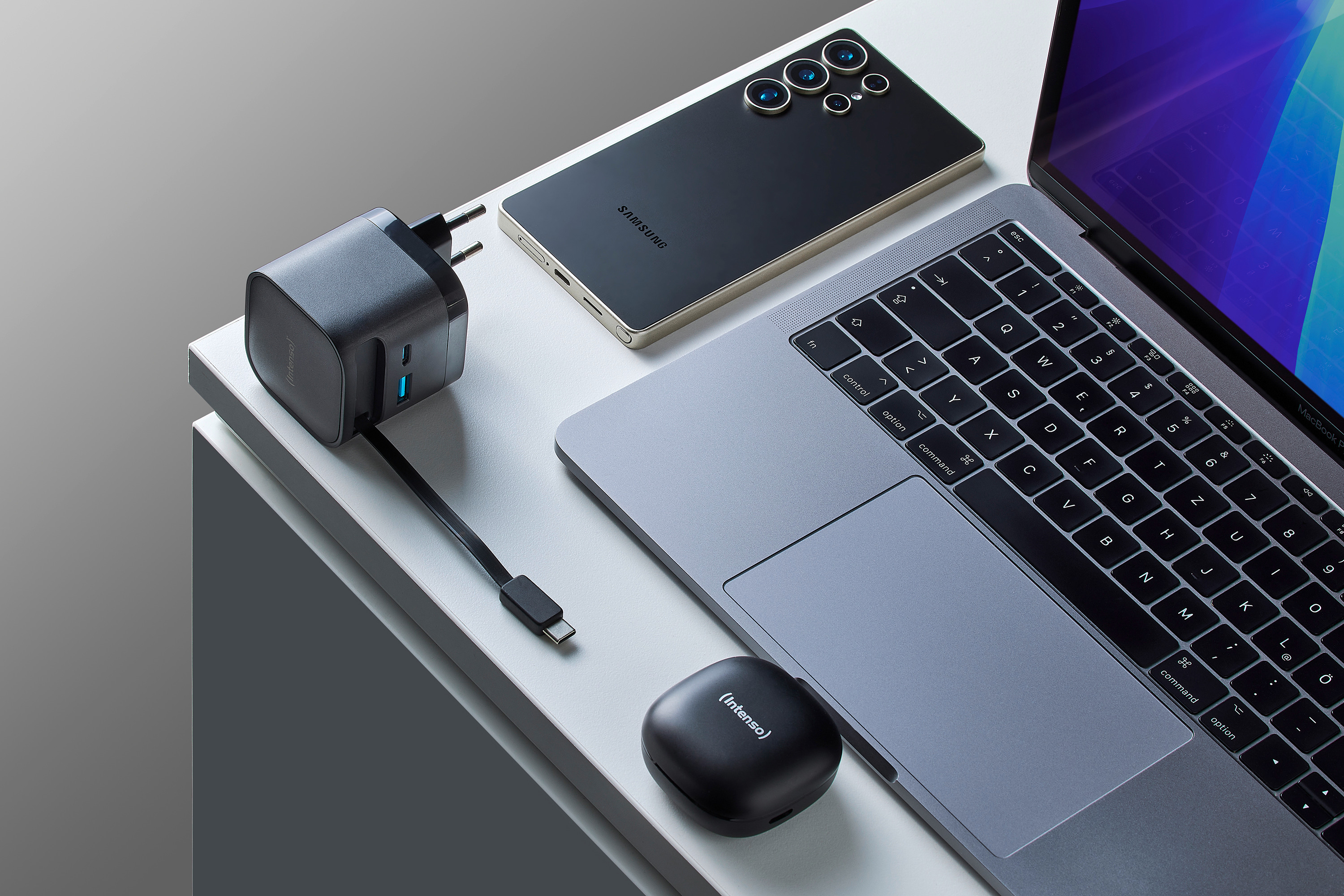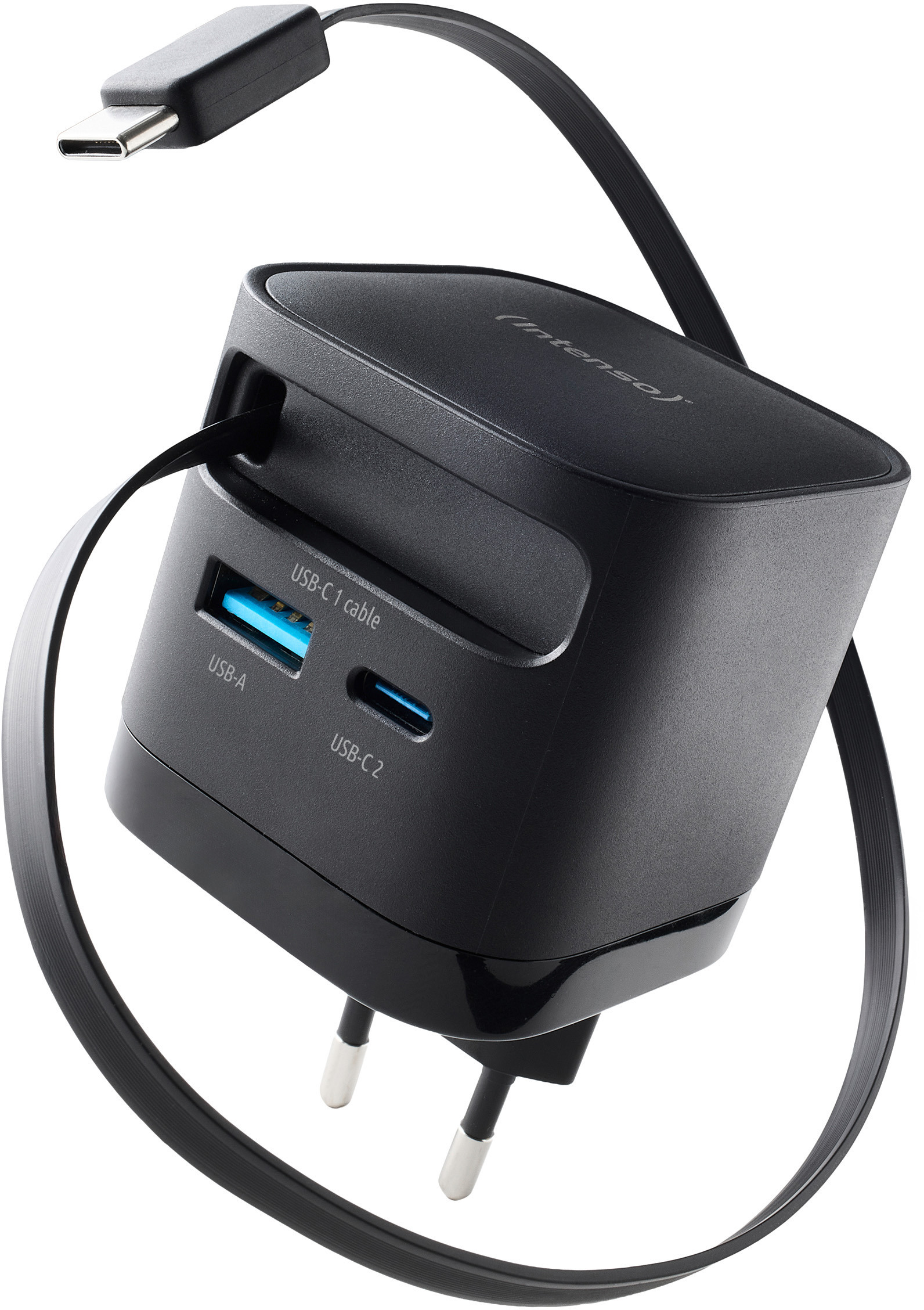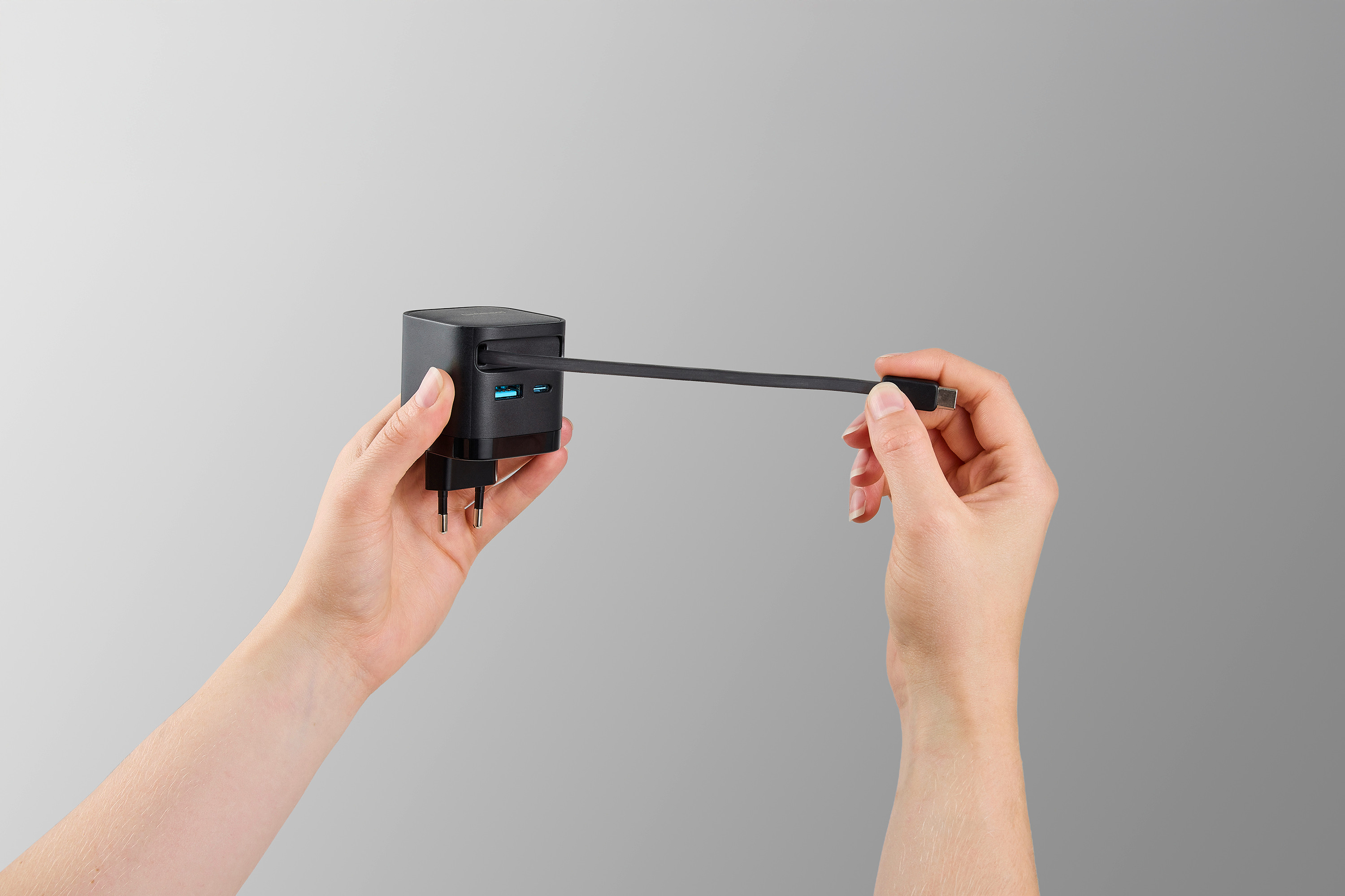Der Intenso Power Adapter W65ACIC GaN ist ein leistungsstarkes und kompaktes Schnellladegerät für den täglichen Einsatz. Mit bis zu 65 W Ausgangsleistung lädt er Smartphones, Tablets und Notebooks zuverlässig und besonders schnell. Dank Unterstützung von Power Delivery 3.0, PPS und Quick Charge 4.0 werden moderne Geräte optimal versorgt. Das integrierte, ausziehbare 70 cm USB-C-Kabel sowie zusätzliche USB-C- und USB-A-Anschlüsse ermöglichen das gleichzeitige Laden mehrerer Geräte mit hoher Effizienz. Die moderne GaN-Technologie sorgt für eine verbesserte Energieeffizienz bei gleichzeitig geringer Wärmeentwicklung. Dadurch bleibt das Ladegerät besonders kompakt und leicht, ohne an Leistung einzubüssen. Mit einer Effizienz von über 78 % und einem Standby-Verbrauch von unter 0,3 W überzeugt der Adapter auch in puncto Nachhaltigkeit. Das robuste Gehäuse, das platzsparende Format und das geringe Gewicht machen ihn zum idealen Begleiter für Zuhause, Büro oder unterwegs. Erhältlich in Schwarz oder Weiss und passend für jede EU-Steckdose.