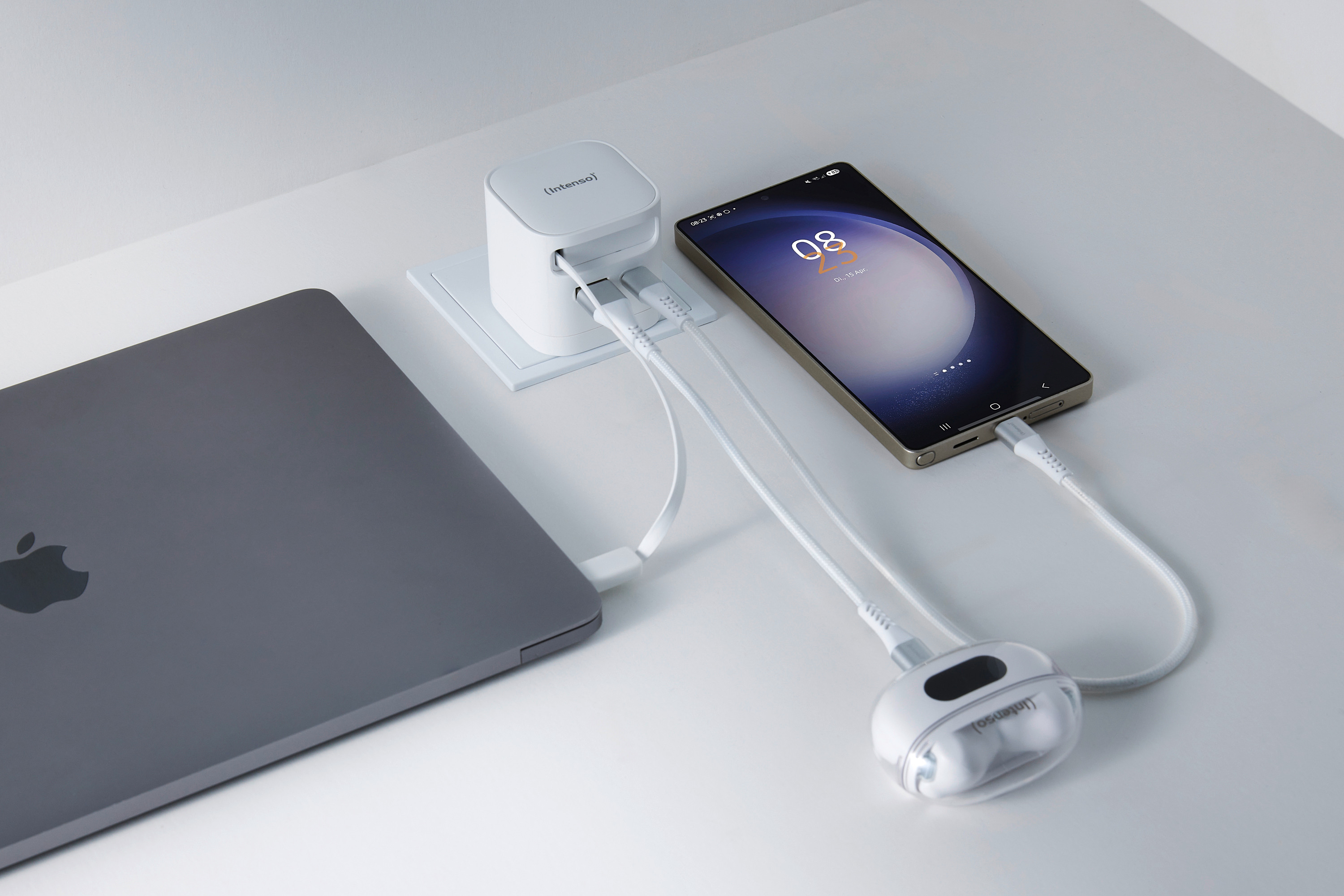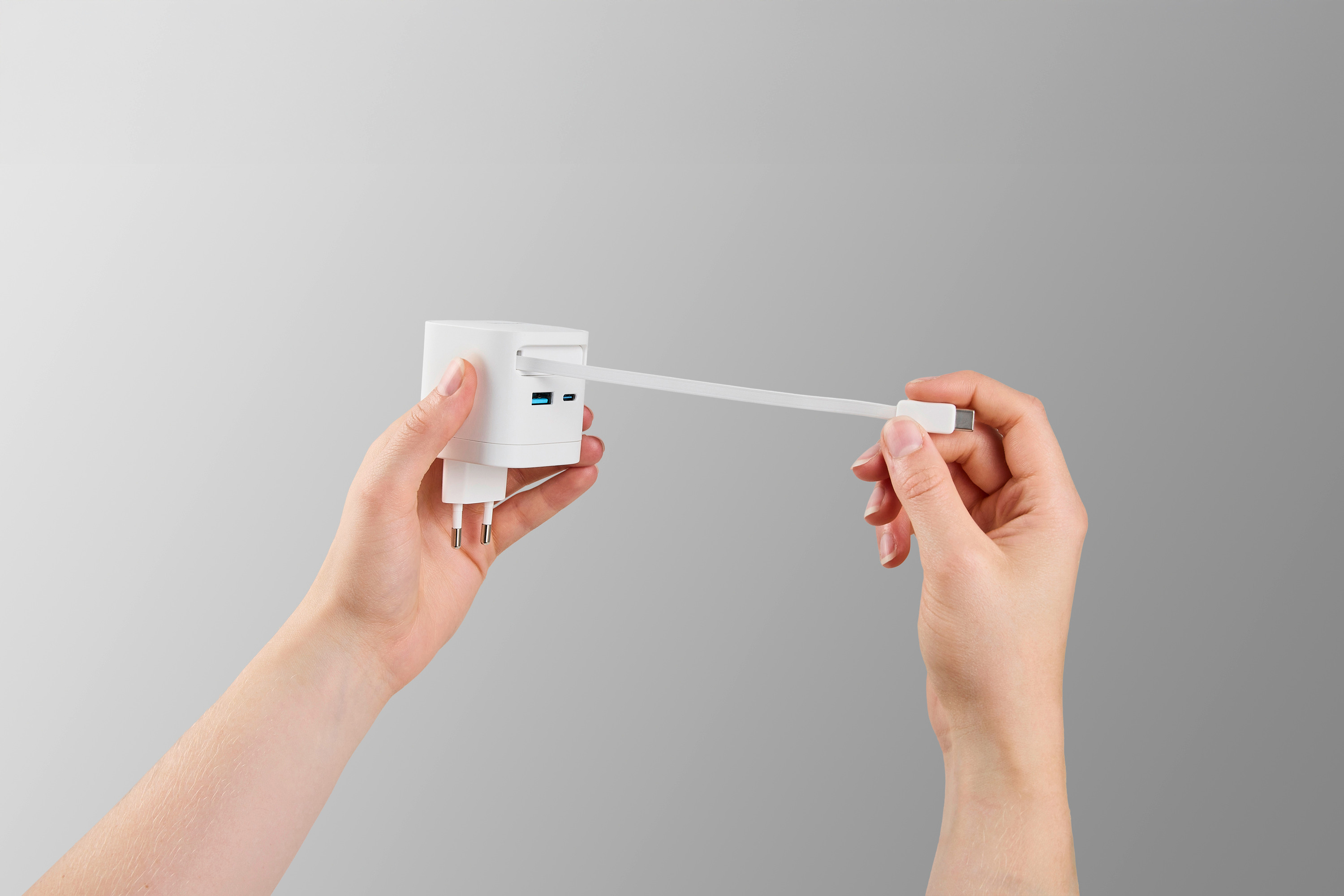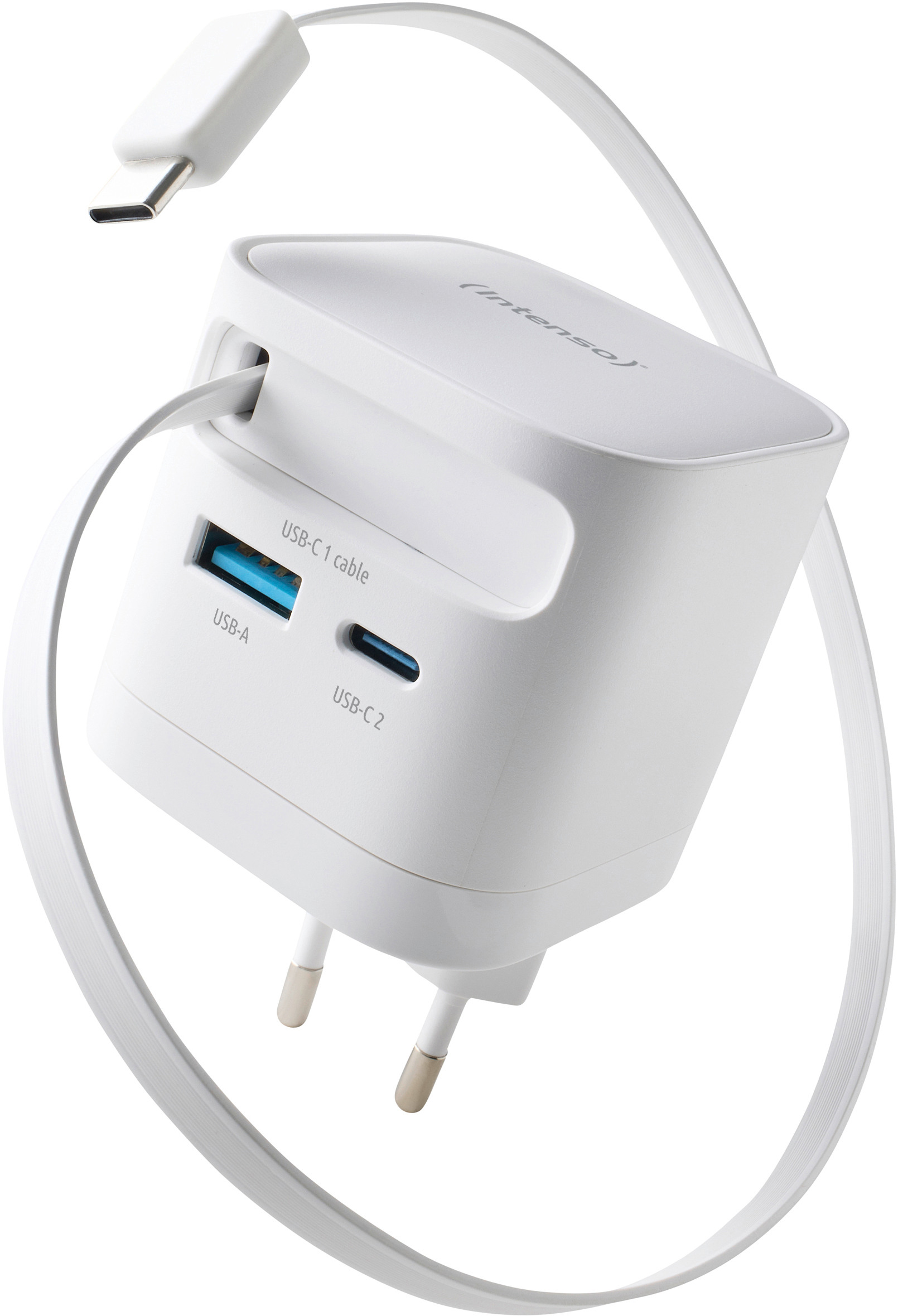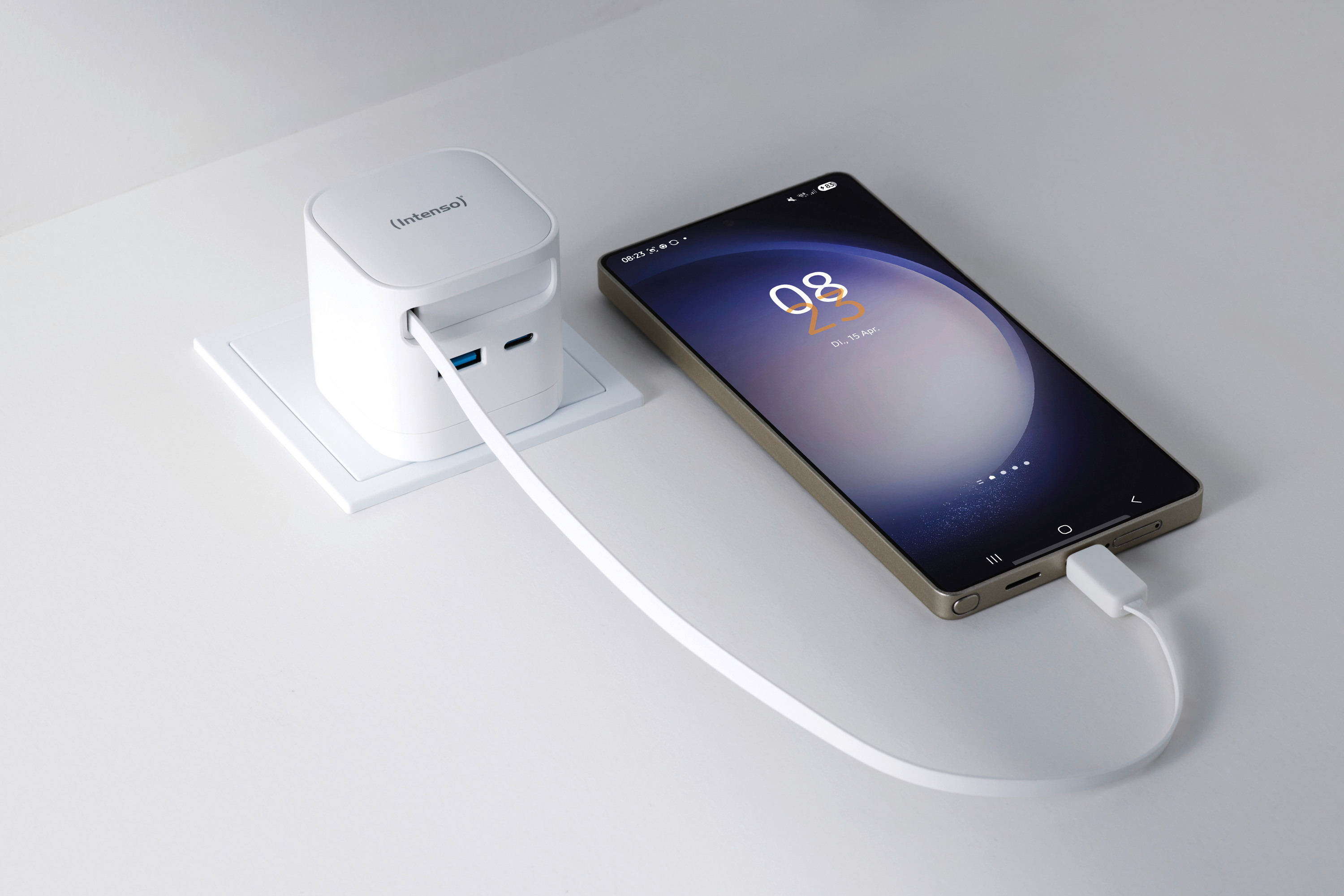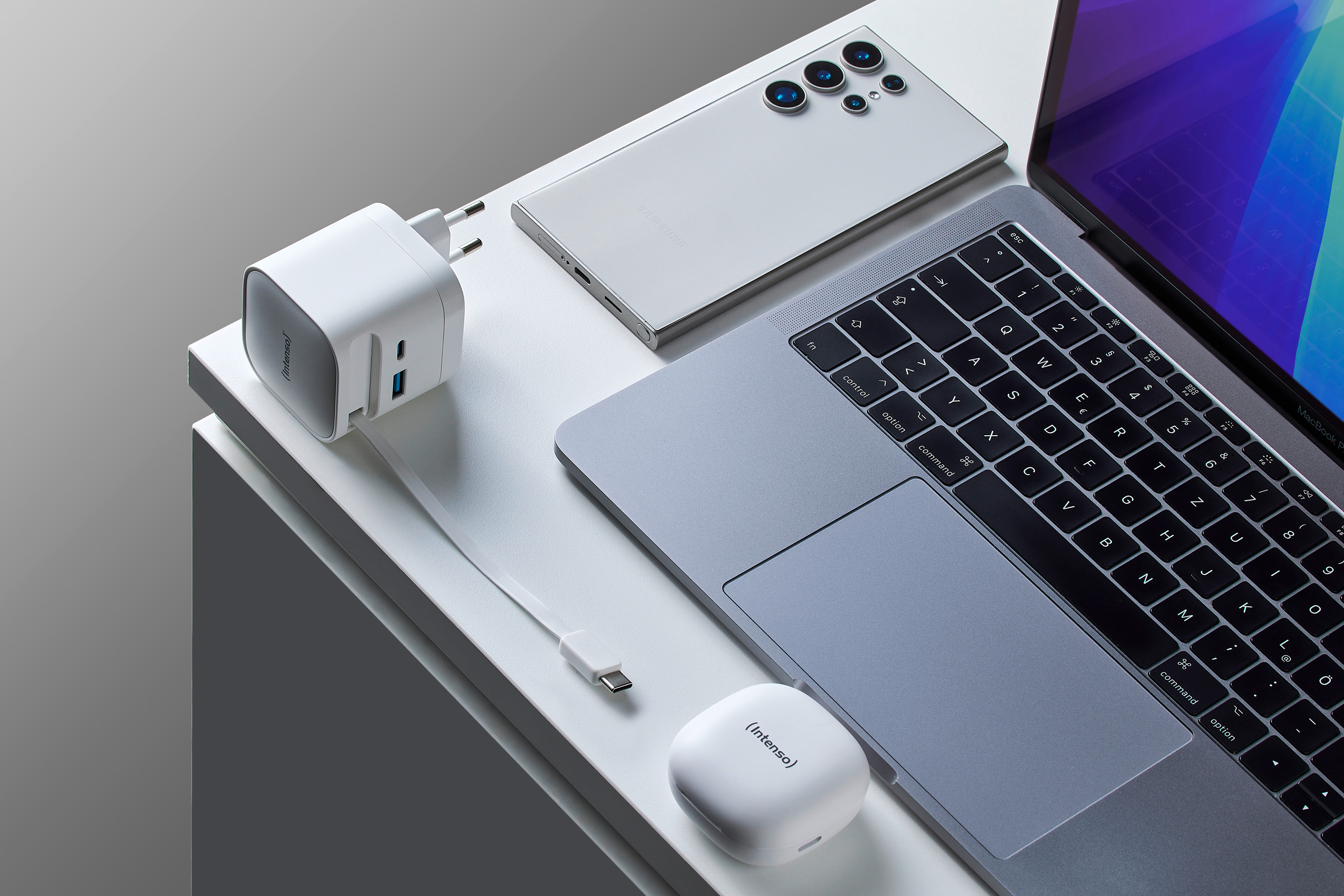 Der Intenso Power Adapter W65ACIC GaN ist ein leistungsstarkes und kompaktes Schnellladegerät für den täglichen Einsatz. Mit bis zu 65 W Ausgangsleistung lädt er Smartphones, Tablets und Notebooks zuverlässig und besonders schnell. Dank Unterstützung von Power Delivery 3.0, PPS und Quick Charge 4.0 werden moderne Geräte optimal versorgt. Das integrierte, ausziehbare 70 cm USB-C-Kabel sowie zusätzliche USB-C- und USB-A-Anschlüsse ermöglichen das gleichzeitige Laden mehrerer Geräte mit hoher Effizienz. Die moderne GaN-Technologie sorgt für eine verbesserte Energieeffizienz bei gleichzeitig geringer Wärmeentwicklung. Dadurch bleibt das Ladegerät besonders kompakt und leicht, ohne an Leistung einzubüssen. Mit einer Effizienz von über 78 % und einem Standby-Verbrauch von unter 0,3 W überzeugt der Adapter auch in puncto Nachhaltigkeit. Das robuste Gehäuse, das platzsparende Format und das geringe Gewicht machen ihn zum idealen Begleiter für Zuhause, Büro oder unterwegs. Erhältlich in Schwarz oder Weiss und passend für jede EU-Steckdose.