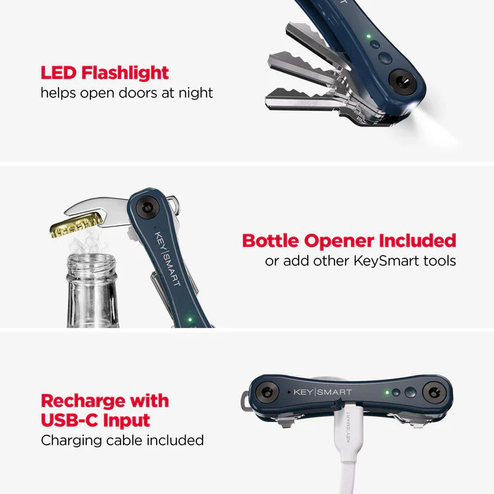 - Soyez averti lorsque vous oubliez vos clés. L'application Apple "Où est ? App vous empêche de manière proactive de perdre vos clés en envoyant des notifications à votre iPhone lorsque vous oubliez vos clés. Faites en sorte que vos clés soient silencieuses, compactes et pratiques. Organisez jusqu'à 14 de vos clés existantes et votre clé de voiture avec le KeySmart® iPro. L'installation simple ne nécessite aucun outil et convient à tous les types de clés. Complétez votre outil multifonctionnel fiable avec l'un de nos mini-outils ou MagConnect. Batterie rechargeable avec une grande autonomie et un indicateur de charge. Le KeySmart® iPro est alimenté par une batterie lithium-polymère et a une autonomie allant jusqu'à 30 jours.