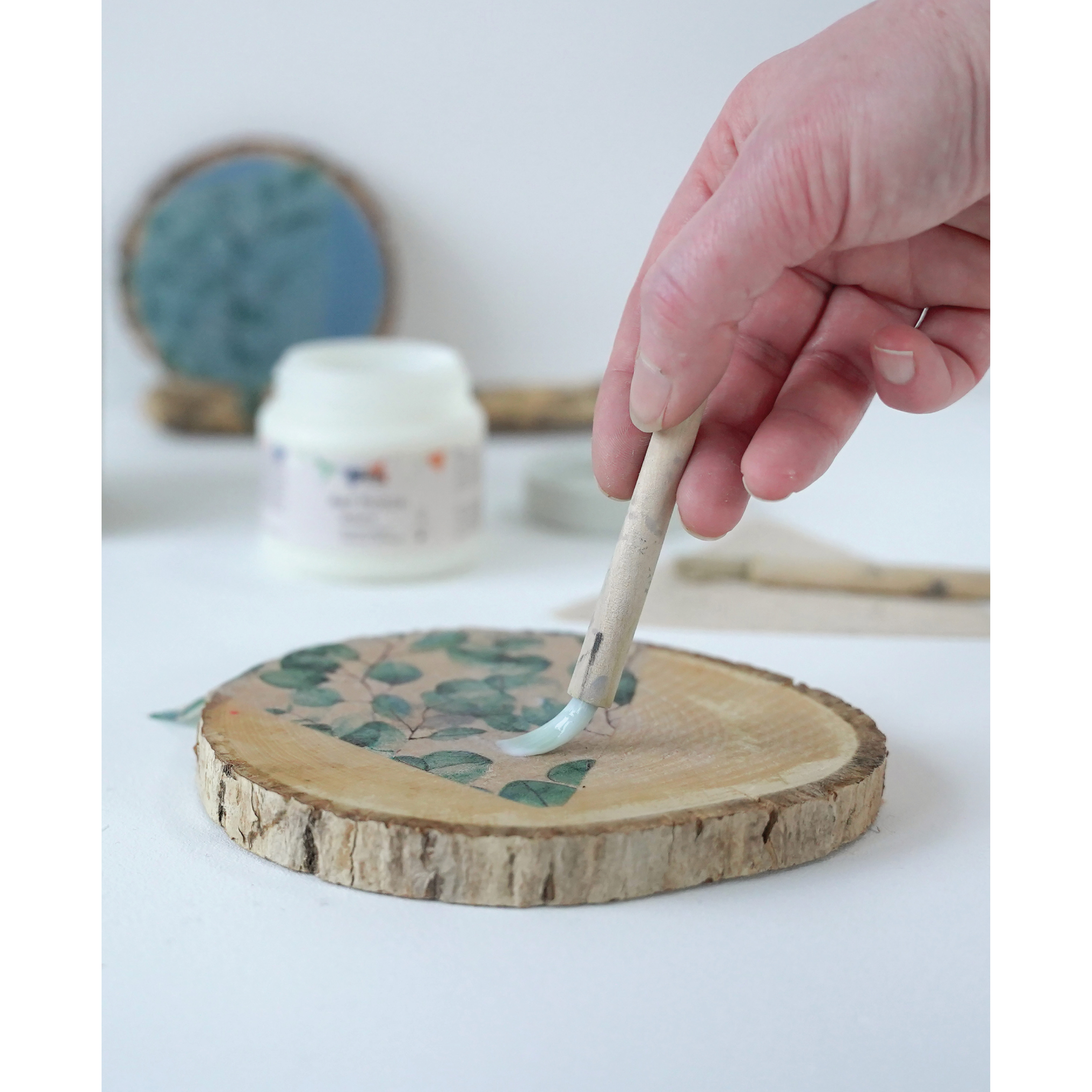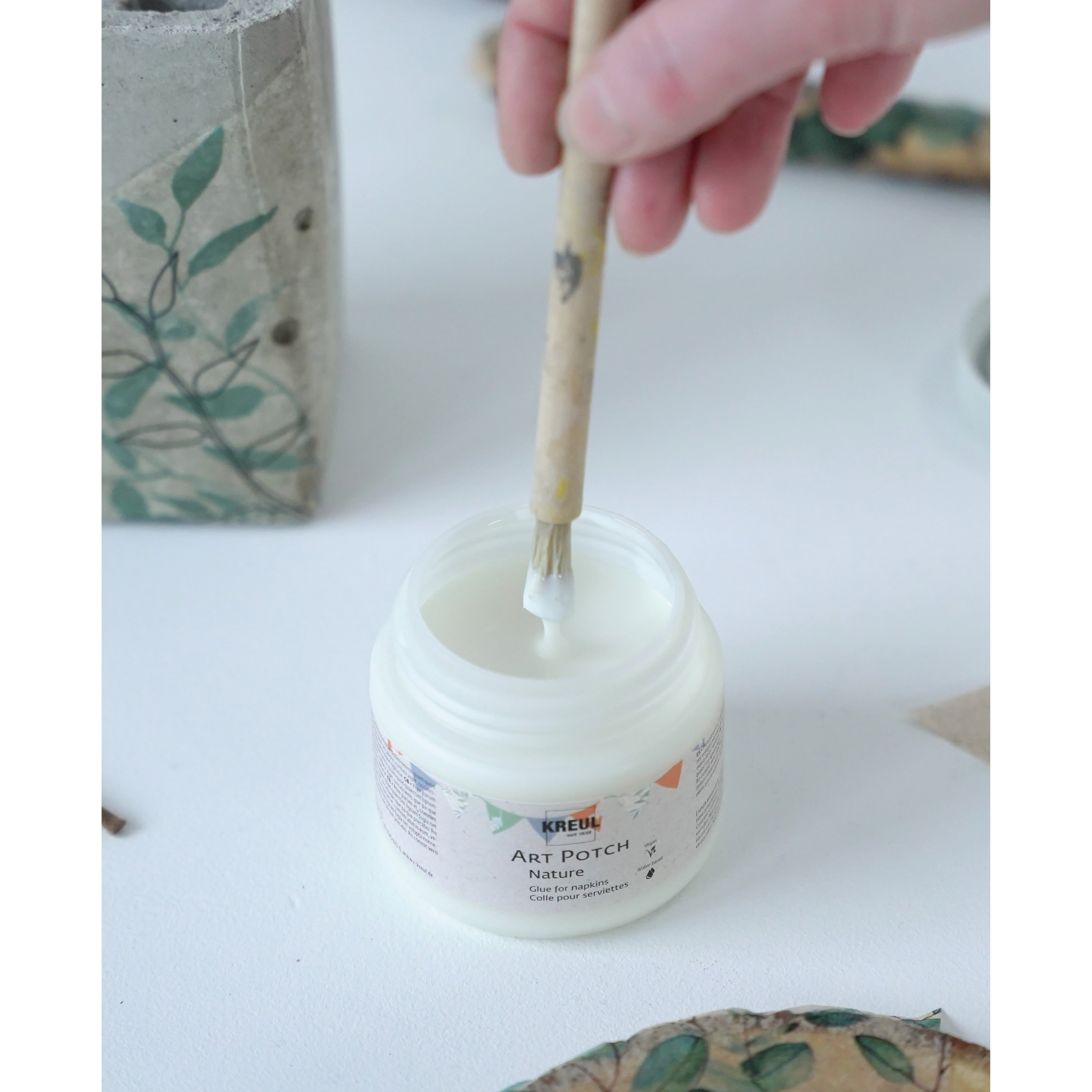 Vous cherchez une alternative de colle durable pour la technique des serviettes ? Nous l'avons ici ! L'Art Potch Nature de KREUL fonctionne sur différentes surfaces et sèche de manière transparente. La particularité de ce produit : La recette contient au moins 80 % de matières premières d'origine naturelle. Nous utilisons un liant innovant issu de sources renouvelables. La boîte et le couvercle du bidon de 150 ml sont en plastique recyclé. Tout simplement durable !