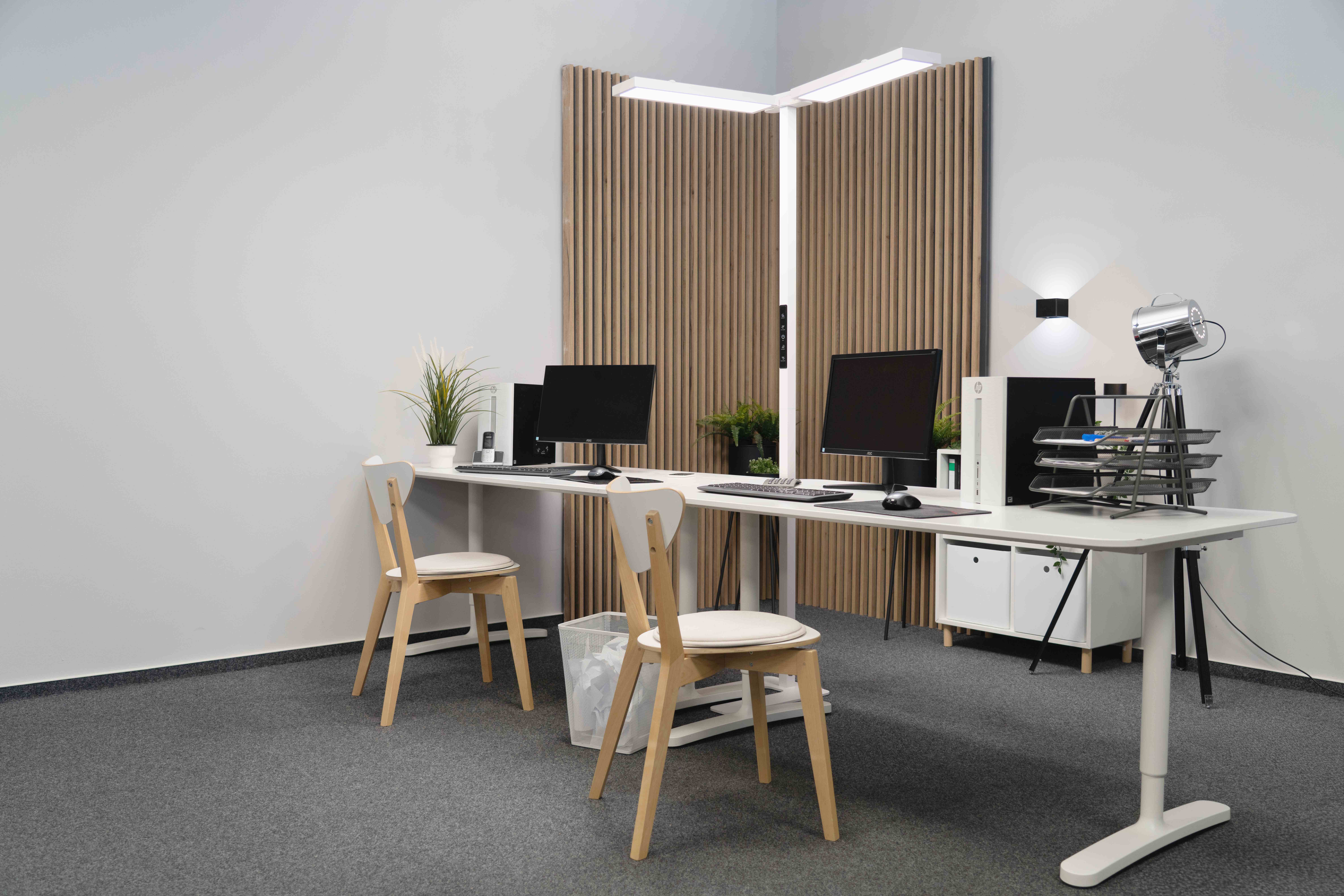 Le lampadaire de bureau LED Luxula DUO Line est une solution d'éclairage moderne et efficace, spécialement conçue pour les environnements de travail professionnels. Avec une puissance totale de 120 watts et la technologie innovante up/downlight, ce lampadaire assure un éclairage uniforme et sans éblouissement de tout le poste de travail. La lampe offre une luminosité impressionnante de 8500 lumens et une lumière blanc neutre avec une température de couleur de 4000 K, ce qui la rend idéale pour un travail concentré. Grâce à un indice de rendu des couleurs (IRC) élevé de 98 et à une valeur UGR inférieure à 16, la lumière est agréable et ne fatigue pas les yeux, même en cas d'utilisation prolongée. Le DUO Line n'est pas seulement performant, il est aussi convivial, car il dispose d'un panneau tactile intuitif et d'une fonction mémoire pratique qui se souvient des derniers réglages. Le boîtier robuste en aluminium et les LED Bridgelux de haute qualité garantissent une longue durée de vie et des performances fiables, tandis que le montage simple permet une utilisation immédiate.