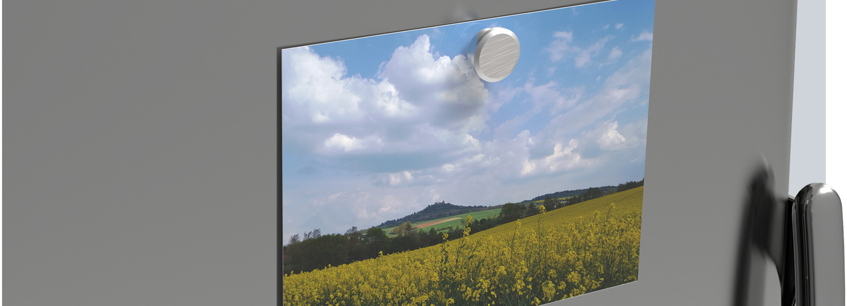 L’avantage de l'aimant néodyme est sa force d’adhérence dans un volume restreint. Forme pure, élégante et moderne : pour utilisateurs axés sur le design dans les salles d’exposition, agences et musées.