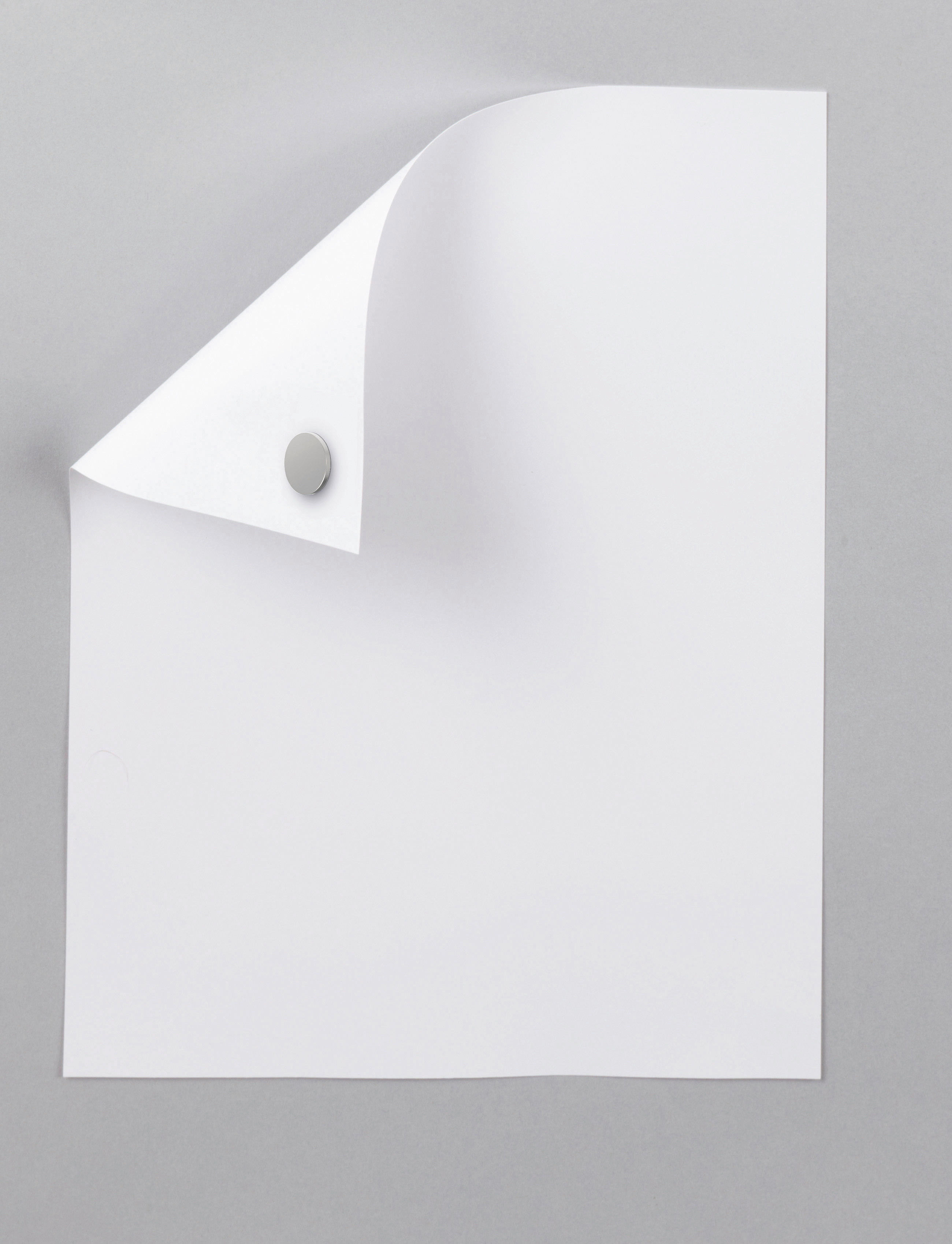 Aimant néodyme avantageux : Il possède une force de maintien élevée pour un faible volume. Forme du disque. Un côté auto-adhésif, un côté magnétique, ne peut pas être enlevé sans laisser de résidu. Pure, élégante, moderne : Pour les utilisateurs orientés vers le design, dans les salles de prestige, les agences, les musées. Également idéal pour MAUL Ferroleiste et Ferroband.