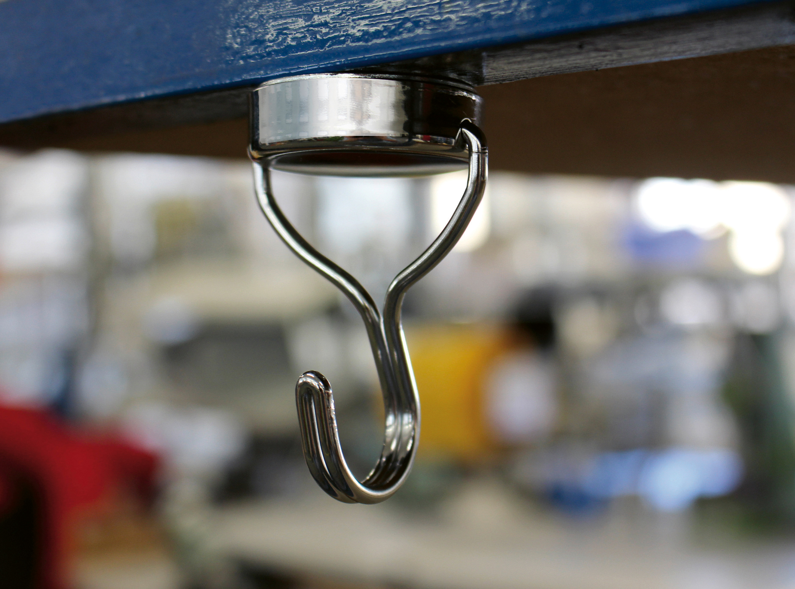 Cet aimant a une force de maintien particulièrement forte : 30 kg. Aimant néodyme avantageux : Force de maintien élevée avec un faible volume. Crochet rotatif, peut également être utilisé comme crochet au plafond ou sur des pentes. Pour tout ce qui peut être accroché, par exemple des clés, des panneaux, du matériel de décoration ou des vêtements légers. Crochet en acier large et incurvé, arrondi de manière protectrice à l'avant.