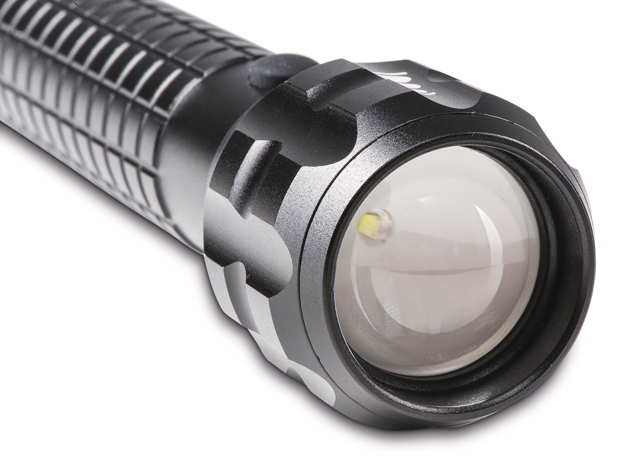 Pour une utilisation semi-professionnelle, longueur 14 cm. Grande portée et intensité lumineuse, longue durée d'éclairage, taille maniable. Adaptée à l'extérieur : convient à une utilisation en plein air, protégée contre les projections d'eau (IPX4). Inclus 3 piles 1,5 V (type AAA) 1200 mAh. Variable : Cône de lumière réglable (fonction zoom) pour un éclairage de proximité diffusé ou un éclairage de loin concentré. 3 niveaux d'éclairage : Luminosité élevée (100 %), luminosité faible (30 %), lumière stroboscopique (flashs lumineux) pour prévenir les dangers. Idéal dans le domaine professionnel, pour les artisans, dans l'atelier, en marchant dans l'obscurité, en camping. Flux lumineux de 192 lumens, longue distance d'éclairage, jusqu'à 196 m. Construction robuste du boîtier, aluminium anodisé noir mat, résistant à la corrosion. Commande des niveaux d'éclairage d'une seule main : Bouton-poussoir caoutchouté sur le côté avant. Réglage rapide et confortable du faisceau lumineux en déplaçant le réflecteur vers l'avant ou l'arrière.