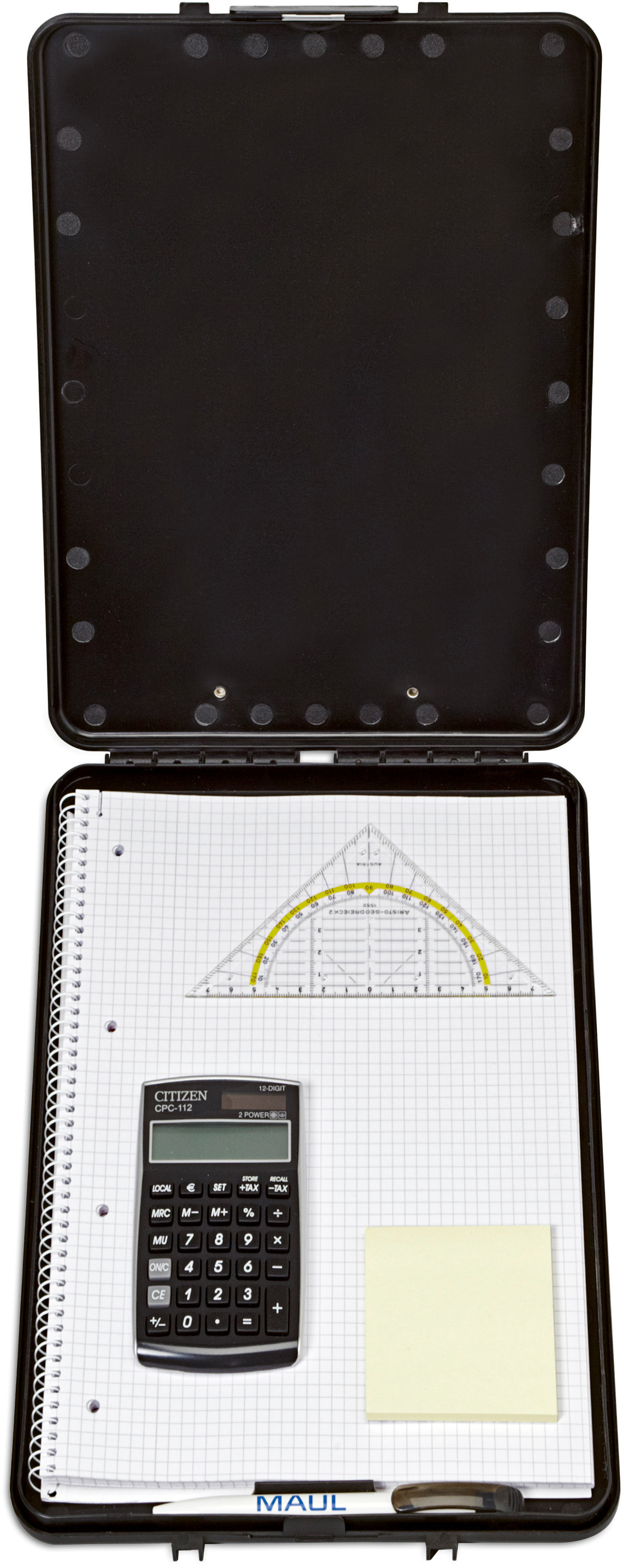 Tablette d'écriture robuste et boîte de rangement séparée pratique en une seule pièce. Sécurité : stockez vos documents à l'abri des chocs, de la poussière et des éclaboussures. Pour tous ceux qui travaillent en déplacement : Artisans, formateurs, moniteurs de conduite, à l'école, à l'université ou lors d'un inventaire. Avec une fermeture à clip pratique, une charnière en plastique solide. Clips à l'extérieur : Clip plat et robuste avec poignée encastrée, largeur de serrage d'environ 0,8 cm.