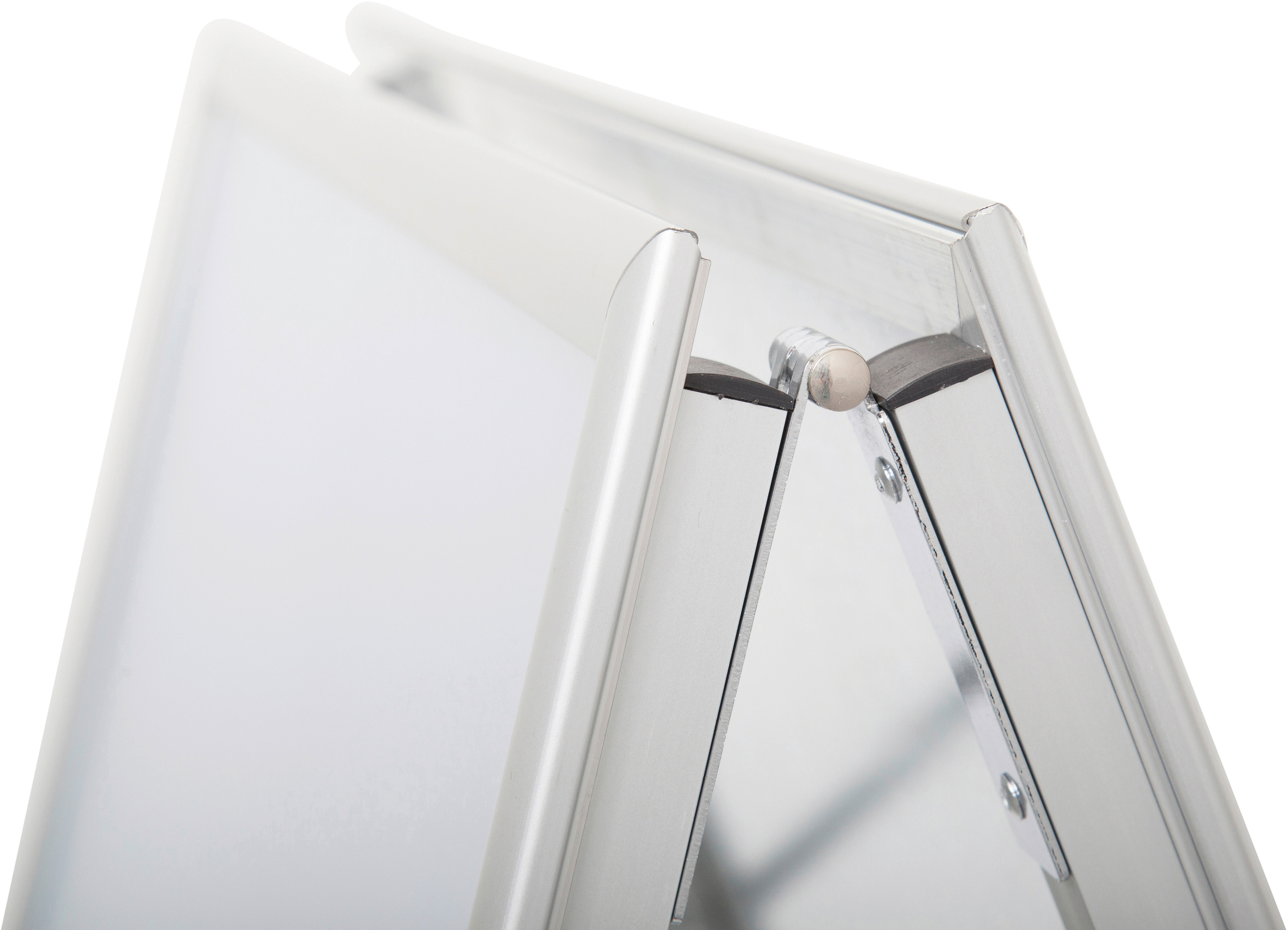 Tréteau d´affichage double face, idéal pour la présentation professionnelle d’informations, d’affiches, de posters à l’intérieur comme à l’extérieur et résistant aux intempéries. Changement et insertion du contenu faciles par l’avant: ouvrir le cadre, retirer le film de protection, déposer l’affiche et la protection, rabattre le cadre et le tour est joué. Le film de protection antireflet stabilisé aux UV évite la décoloration. Le cadre est constitué d’un profilé d'aluminium anodisé gris (32 mm). Les parois arrière sont en inox galvanisé à chaud et leur poids assure une grande stabilité.