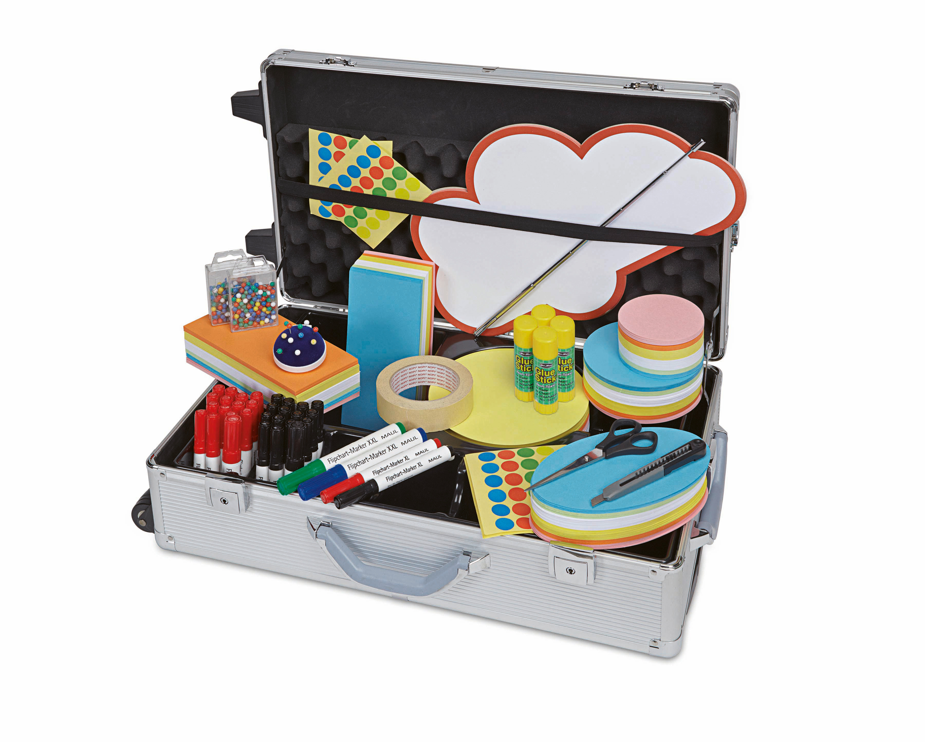 La mallette de haute qualité, verrouillable, avec roulettes et poignée télescopique est constituée de 2923 pièces. Pas de glissement: système de rangement interne thermoformé. Trois serrures à bascule robustes et 2 clés comprises. Deux roulettes montées sur roulement à billes et deux grands pieds en matière plastique protègent le fond de la mallette et lui procurent une base solide. Avec cette mallette pour animateurs professionnels, vos ateliers et vos animations seront parfaitement équipés.