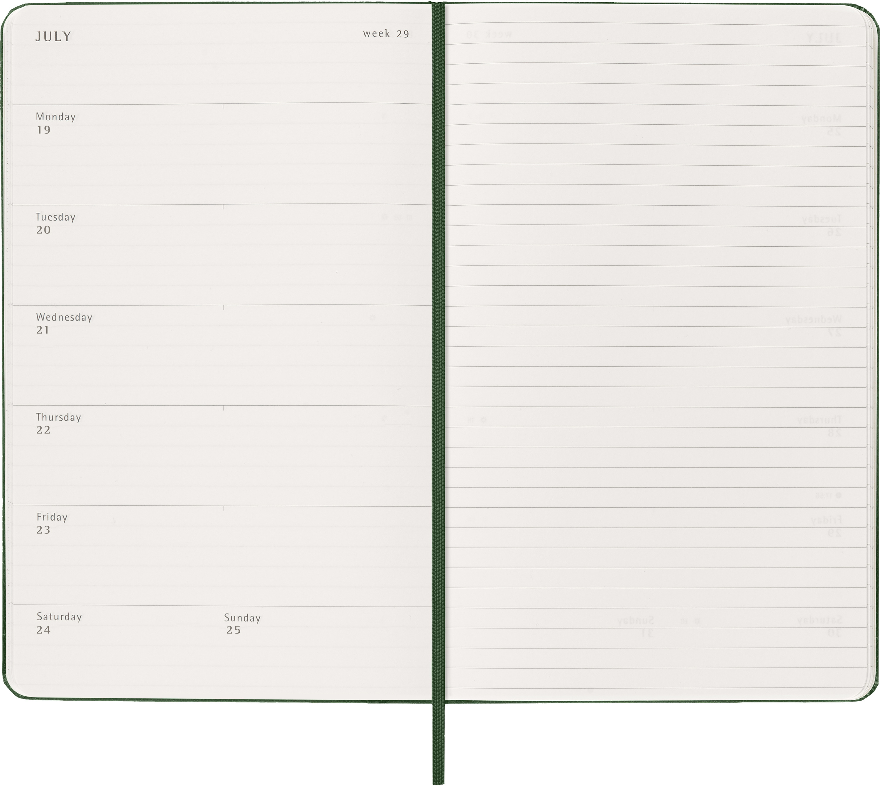 L'agenda / calendrier semainier Moleskine va de janvier à décembre. Avec les dates de la semaine sur la page de gauche et une page lignée à droite avec de l'espace pour des notes et des idées, ce format d'agenda populaire est parfait pour les apprenants, les enseignants et les professionnels.