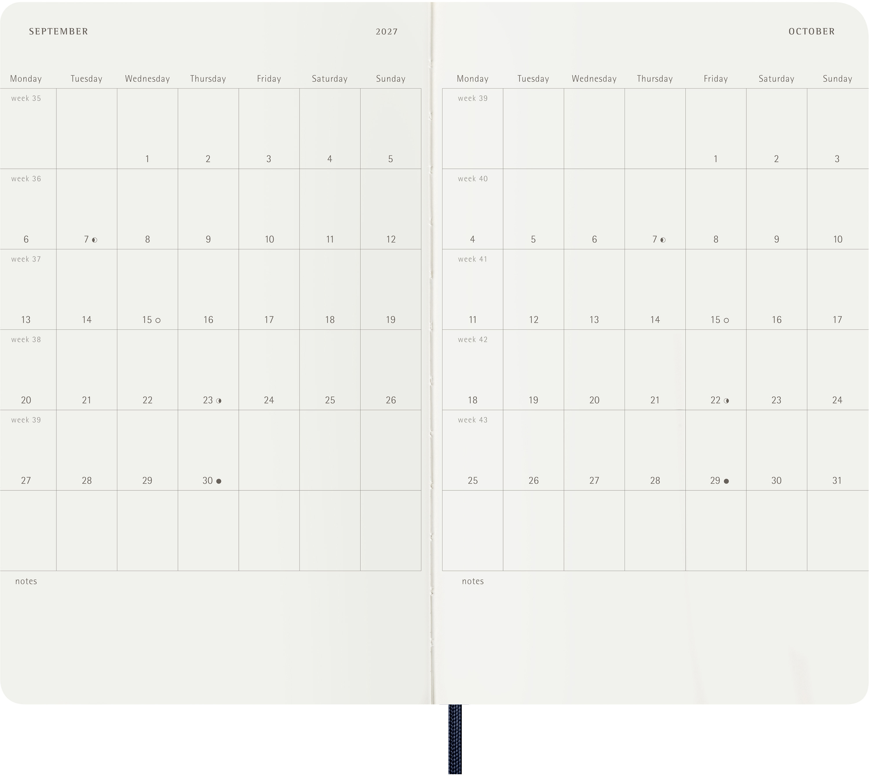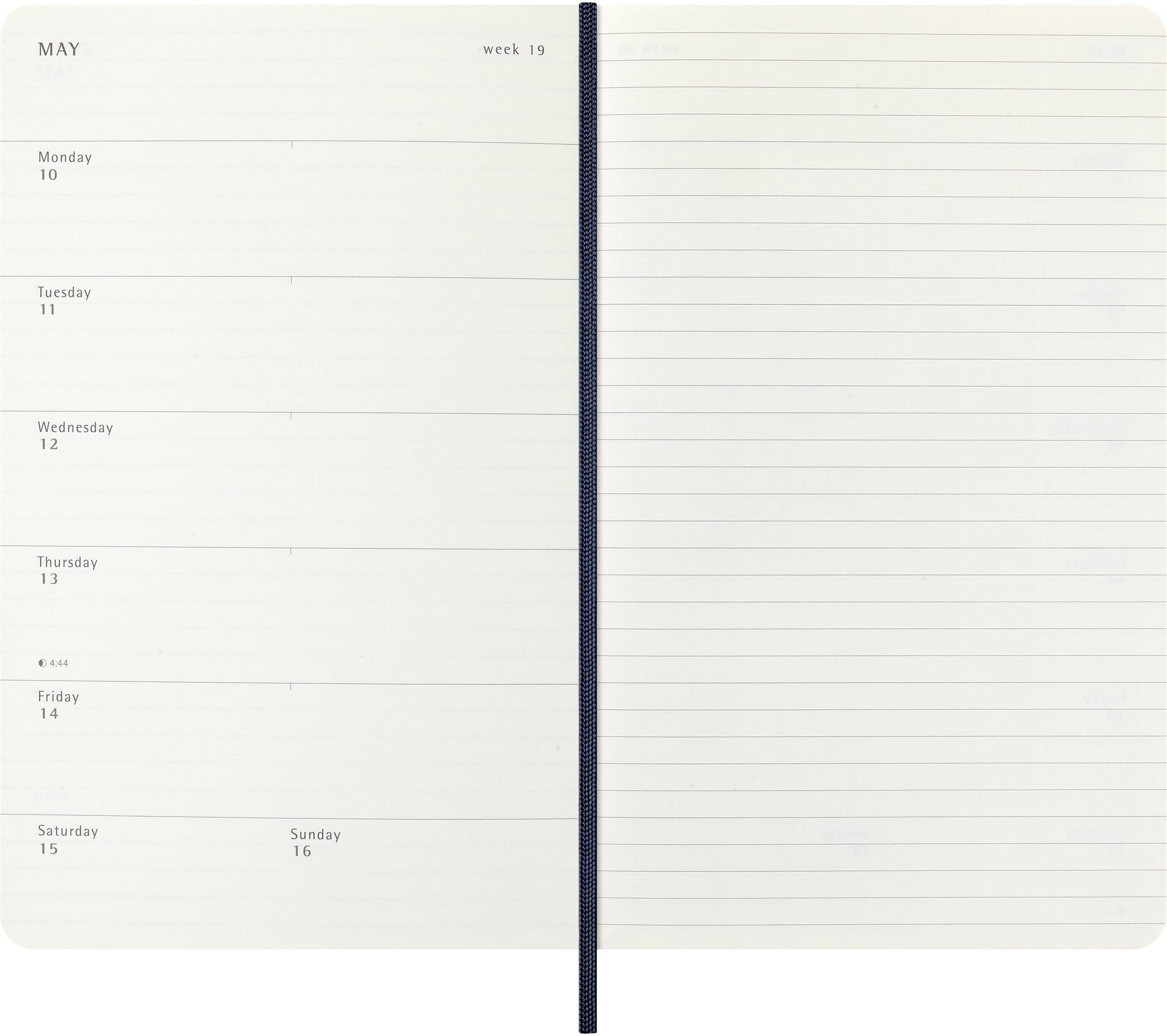 L'agenda / calendrier semainier Moleskine va de janvier à décembre. Avec les dates de la semaine sur la page de gauche et une page lignée à droite avec de l'espace pour des notes et des idées, ce format d'agenda populaire est parfait pour les apprenants, les enseignants et les professionnels.