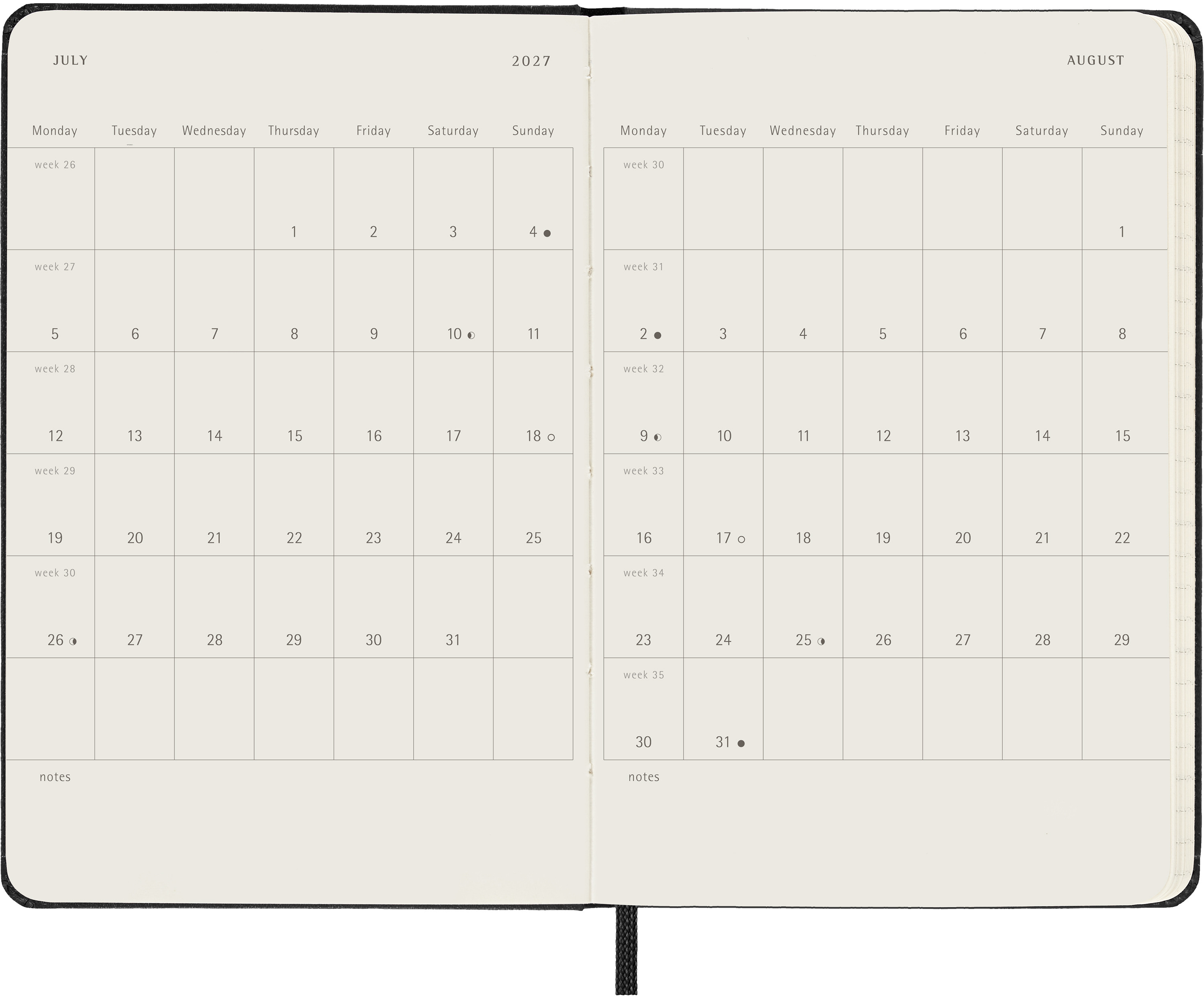 L'agenda / calendrier semainier Moleskine va de janvier à décembre. Avec les dates de la semaine sur la page de gauche et une page lignée à droite avec de l'espace pour des notes et des idées, ce format d'agenda populaire est parfait pour les apprenants, les enseignants et les professionnels.