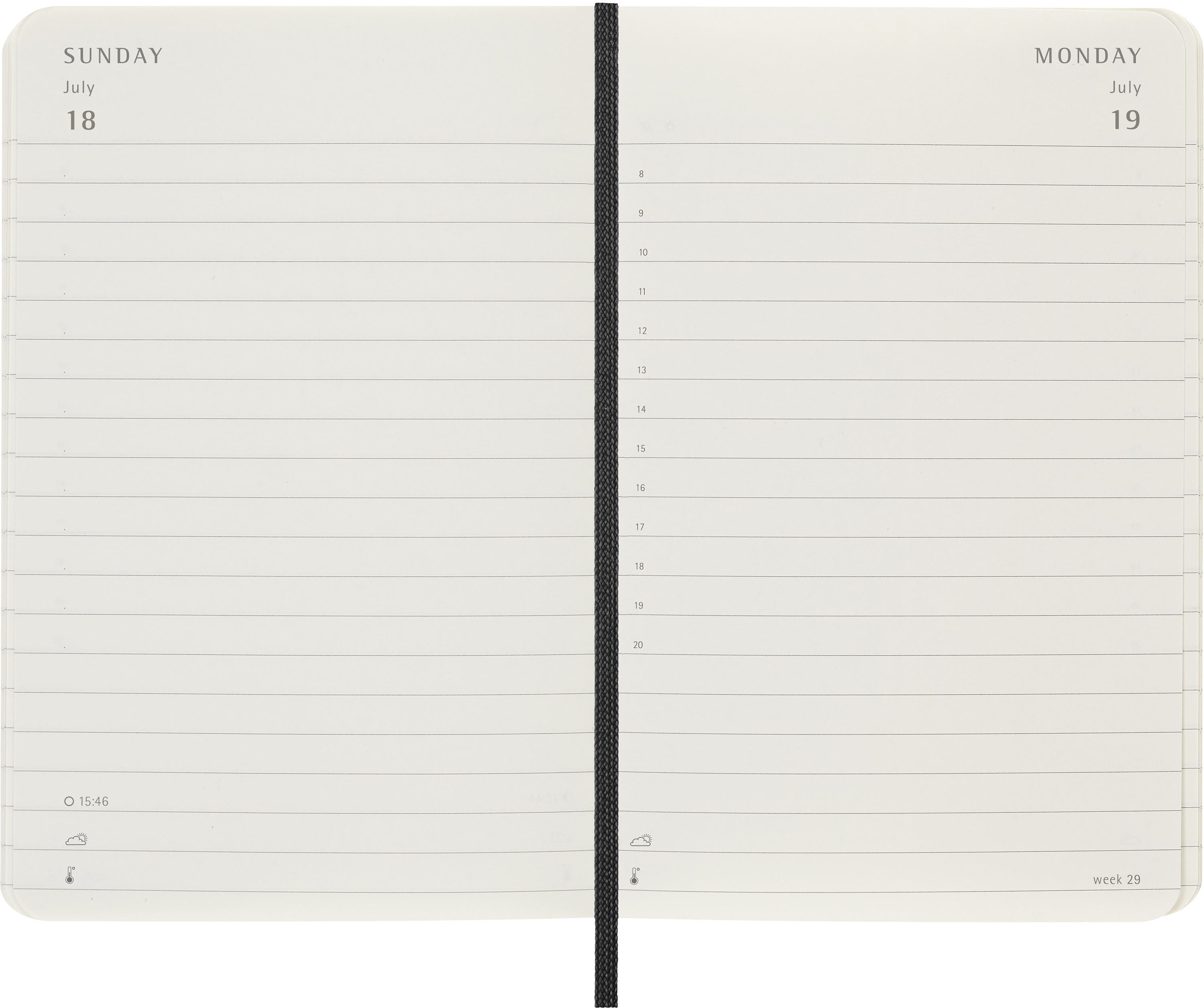L'agenda journalier Moleskine va de janvier à décembre. Ce calendrier très apprécié, avec sa propre page par jour, est disponible dans de nombreuses couleurs afin d'immortaliser en détail chaque jour de l'année.