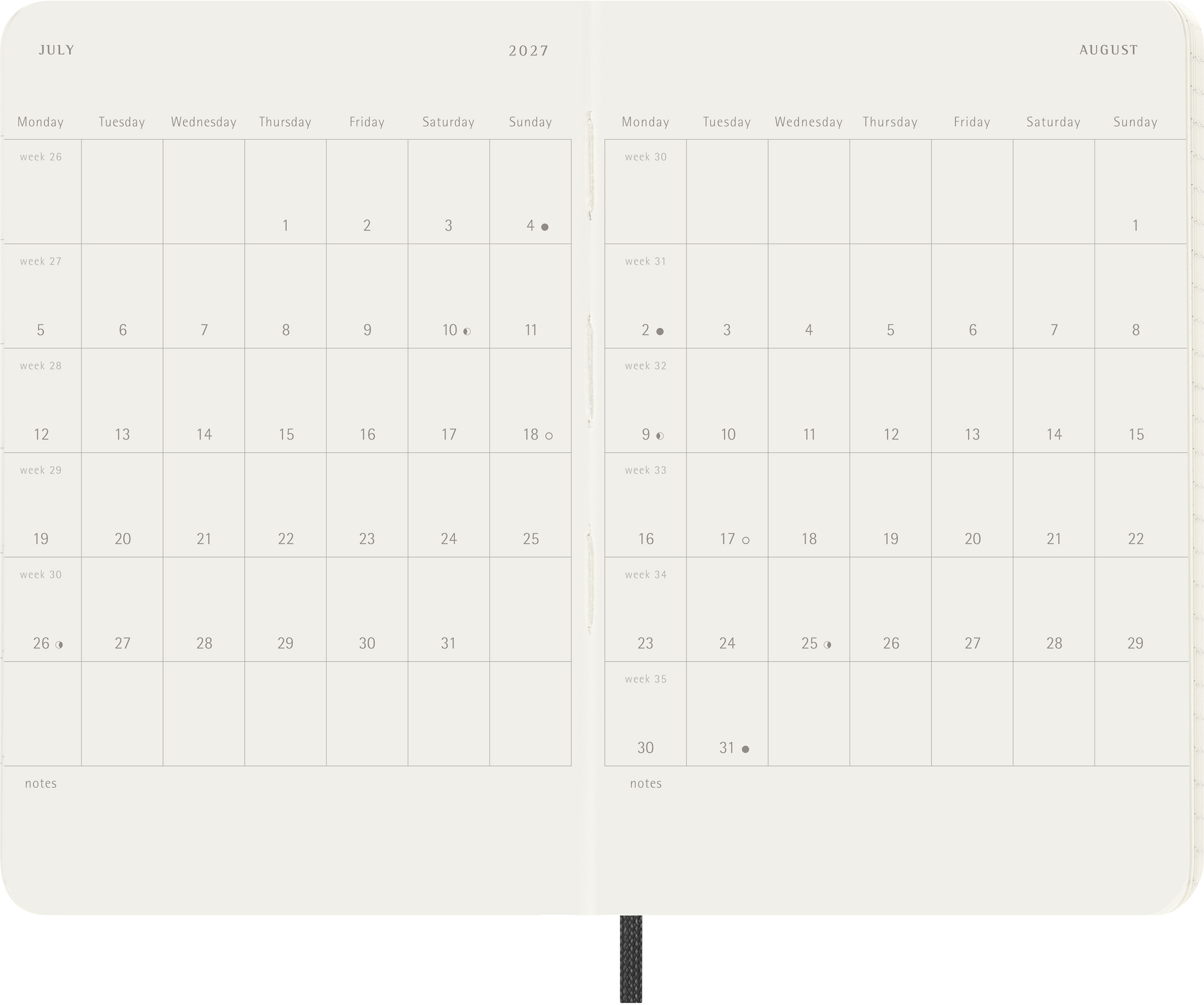 L'agenda / calendrier semainier Moleskine va de janvier à décembre. Avec les dates de la semaine sur la page de gauche et une page lignée à droite avec de l'espace pour des notes et des idées, ce format d'agenda populaire est parfait pour les apprenants, les enseignants et les professionnels.