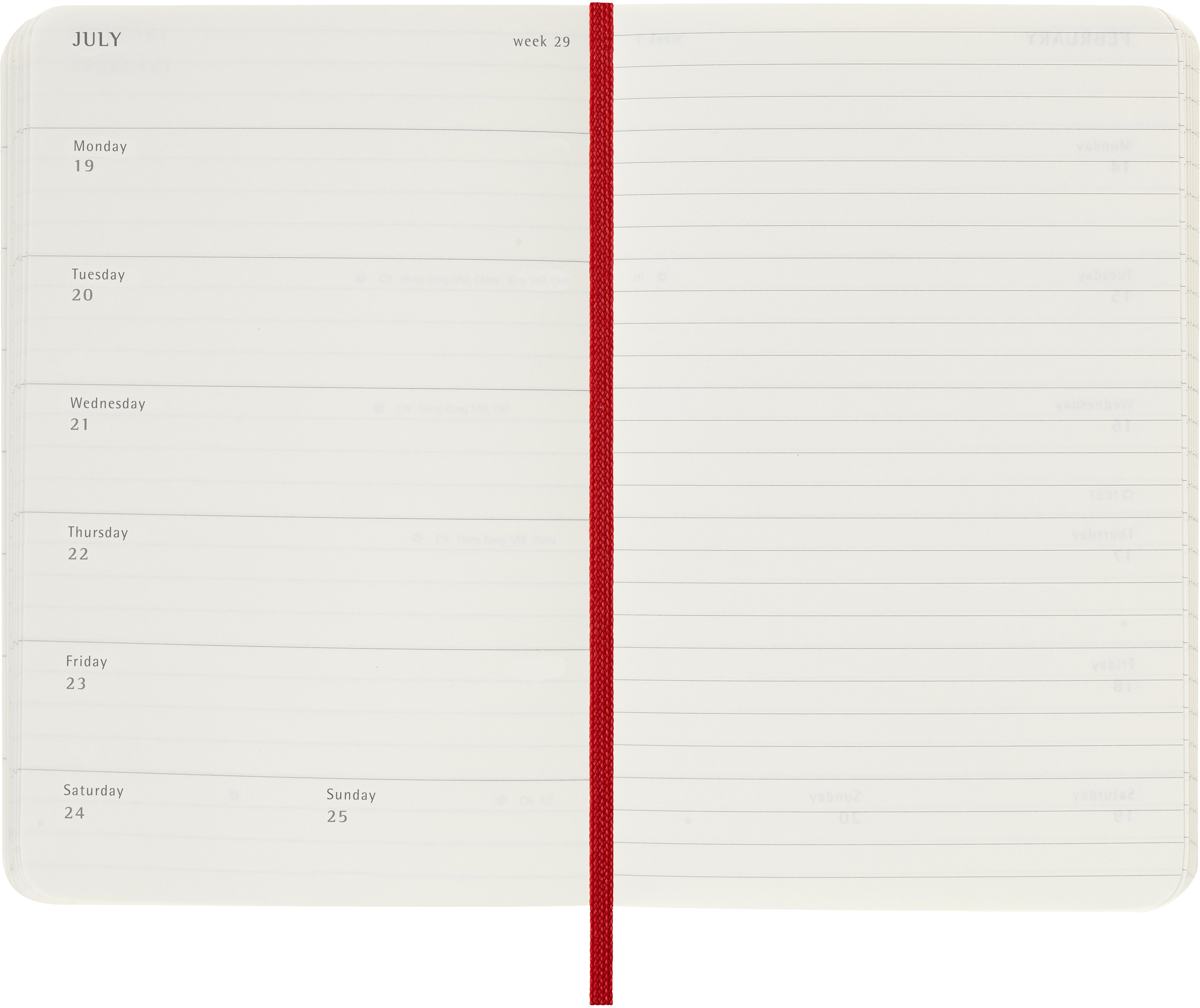 L'agenda / calendrier semainier Moleskine va de janvier à décembre. Avec les dates de la semaine sur la page de gauche et une page lignée à droite avec de l'espace pour des notes et des idées, ce format d'agenda populaire est parfait pour les apprenants, les enseignants et les professionnels.