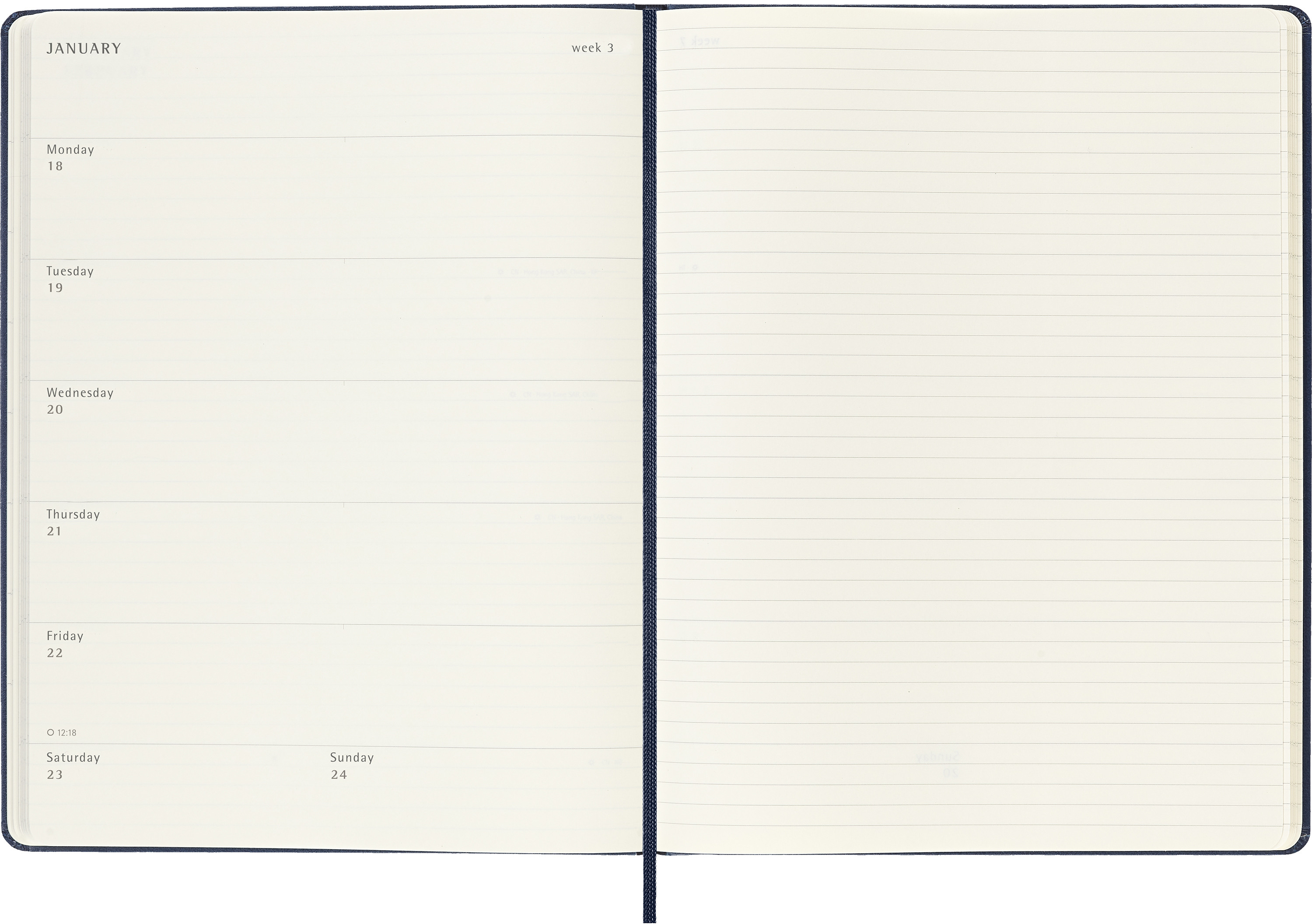 L'agenda / calendrier semainier Moleskine va de janvier à décembre. Avec les dates de la semaine sur la page de gauche et une page lignée à droite avec de l'espace pour des notes et des idées, ce format d'agenda populaire est parfait pour les apprenants, les enseignants et les professionnels.