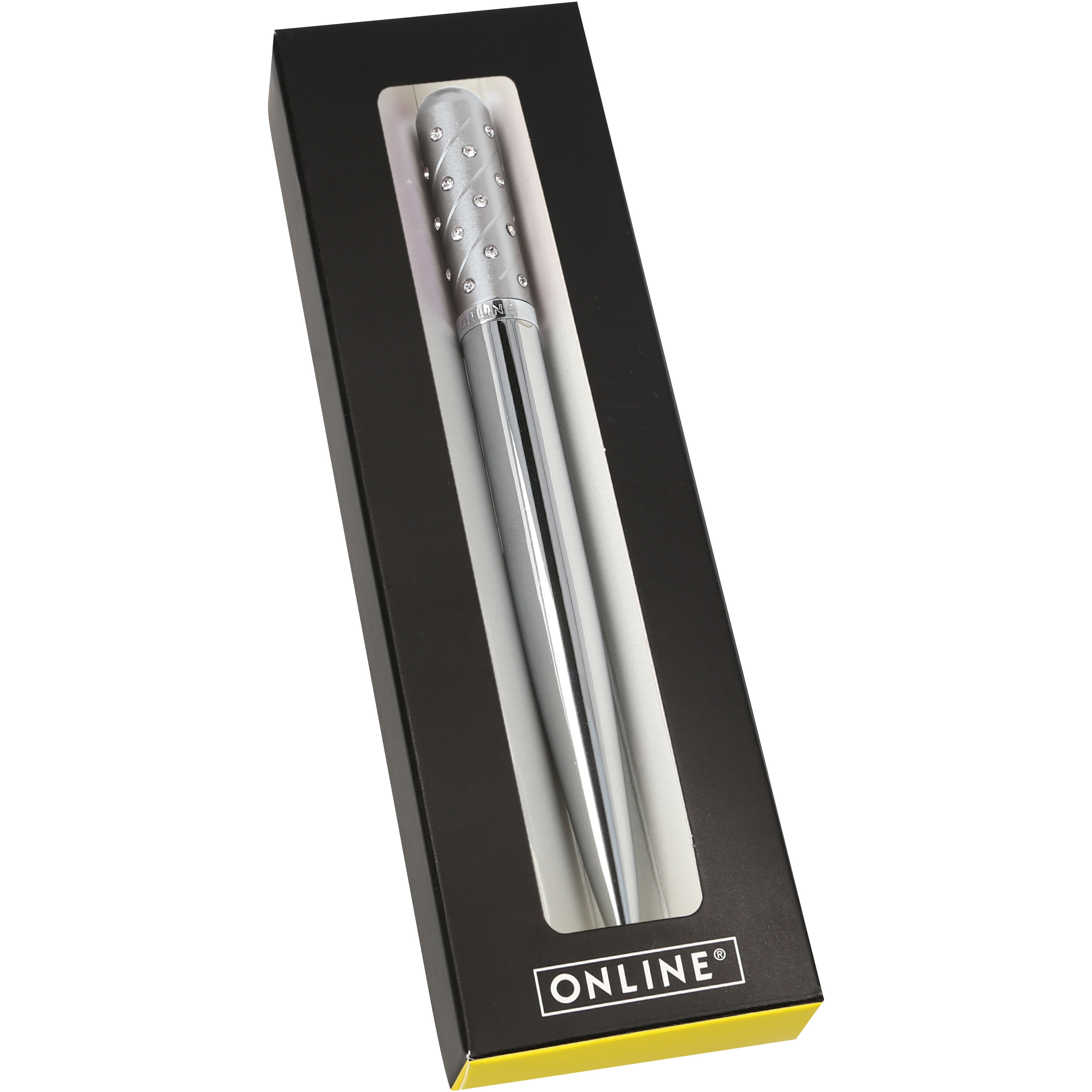 - Ce stylo à bille raffiné, orné d'éléments Crystal étincelants, est plus qu'un simple outil d'écriture - c'est une véritable déclaration. Avec son design raffiné, il confère une note luxueuse à chaque bureau et apporte une touche d'éclat à chaque écrit.