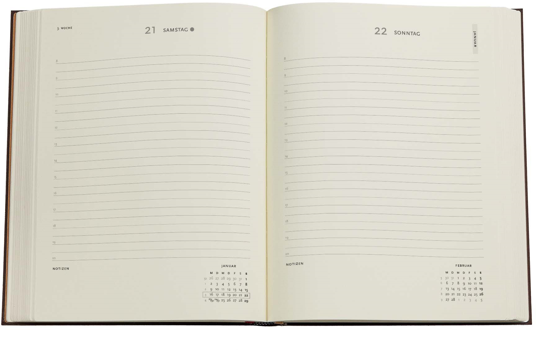 Tous les agendas Paperblanks sont fabriqués avec la couture Smyth de haute qualité. La couverture et les rabats de la reliure sont fabriqués à partir de matériaux européens 100 % recyclés.<br>À l'intérieur, du papier couché lisse et sans acide, provenant de forêts exploitées de manière durable, garantit une écriture propre. Deux rubans de lecture et des poches intérieures à soufflet pratiques complètent l'équipement.