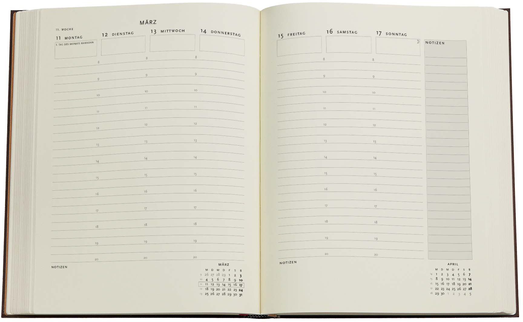 Tous les agendas Paperblanks sont fabriqués avec la reliure de la plus haute qualité, la reliure cousue. Les rabats de la couverture sont composés à 100 % de matériaux recyclés. Le papier d'écriture est fabriqué à partir de cellulose issue de forêts gérées durablement.