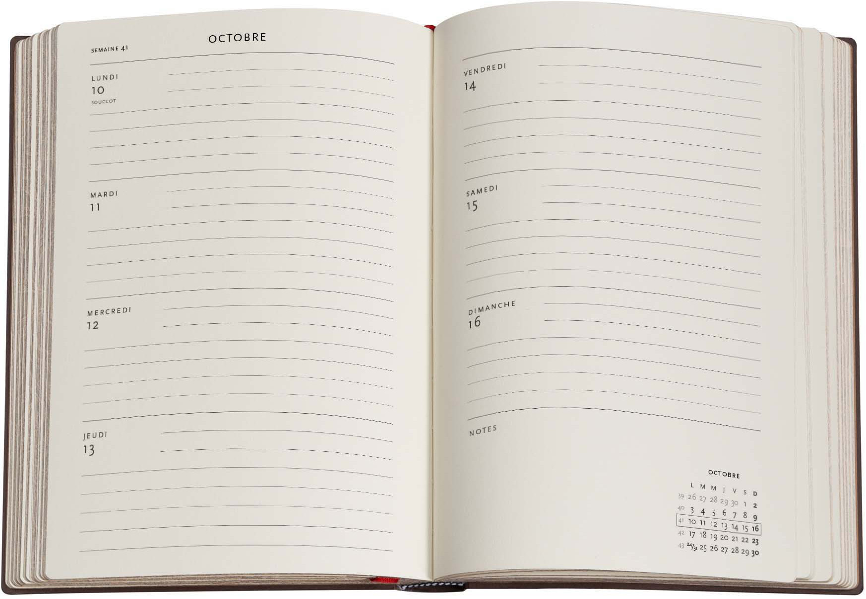 Tous les agendas Paperblanks sont fabriqués avec la reliure de la plus haute qualité, la reliure cousue. Les rabats de la couverture sont composés à 100 % de matériaux recyclés. Le papier d'écriture est fabriqué à partir de cellulose issue de forêts gérées durablement.