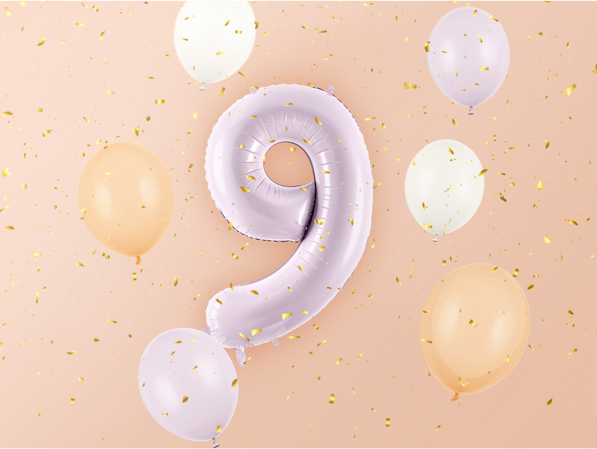 Der pastellfarbene Folienballon mit der Ziffer 9 ergänzt die Geburtstagsszenerie auf stilvolle Weise. Vor dem Aufblasen misst er 86 cm, nach dem Aufblasen 72 cm. Er kann sowohl mit Luft als auch mit Helium befüllt werden und wird im Set inklusive Strohhalm geliefert, sodass die Vorbereitung besonders einfach ist. Der Ballon ist selbstversiegelnd und mit einem Haken ausgestattet, der eine mühelose Befestigung ermöglicht. Die sanften Pastellfarben machen ihn zu einem vielseitigen Element, das sich perfekt mit weiteren Zahlenballons oder thematischer Dekoration kombinieren lässt – ideal für runde Geburtstage, Jubiläen oder besondere Meilensteine.