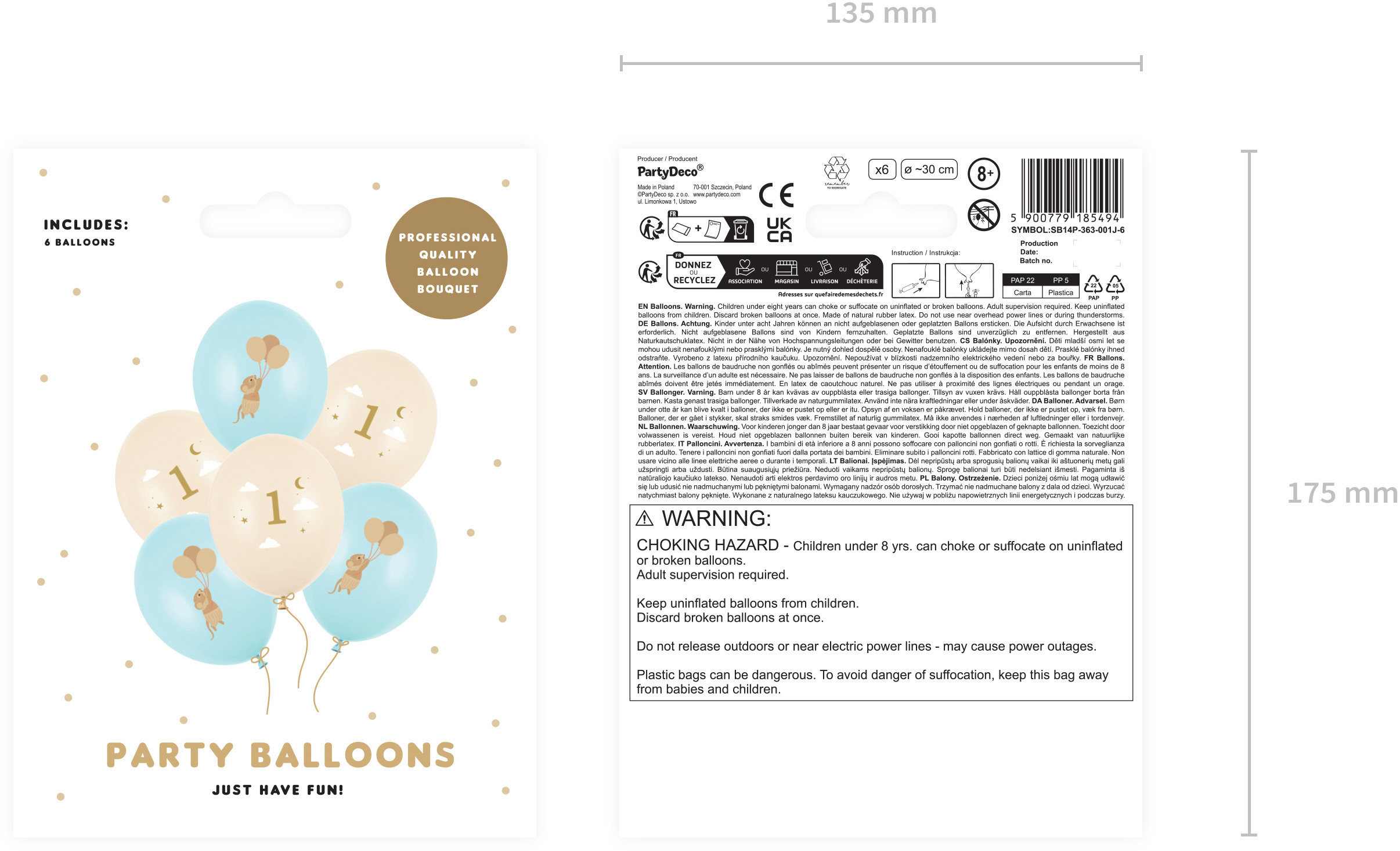 Ballons Strong Souris avec chiffre 1. Le set contient 6 ballons avec impression recto-verso en deux couleurs : 3 x Pastel Light Blue et 3 x Pastel Blush. Diamètre env. 30 cm.(1 UE / 6 pcs.)